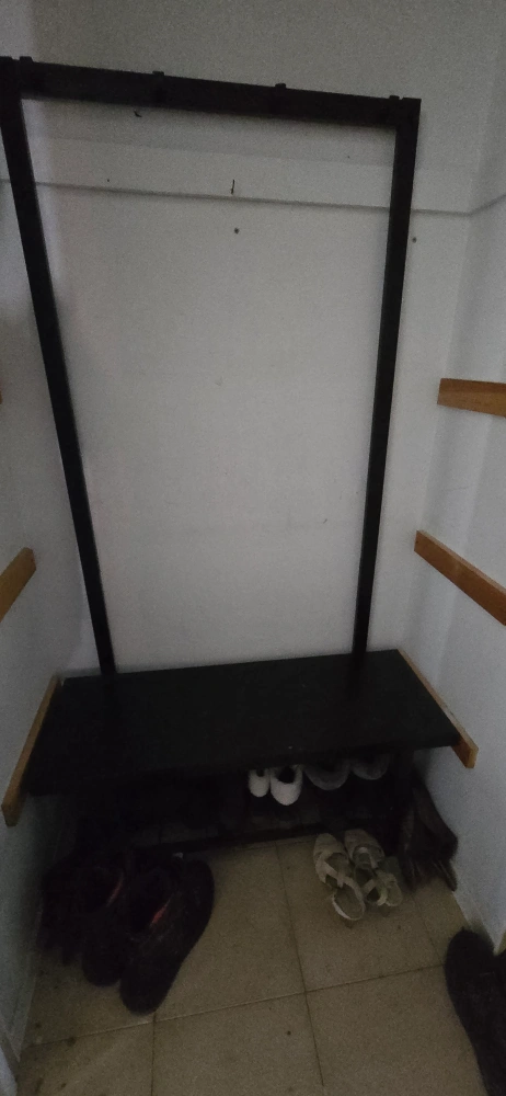 Selling a handy clothes rack with built-in shoe storage! It's black and in good condition. Perfect for organizing your clothes and shoes in a small space. It's sturdy and a great addition to any room!