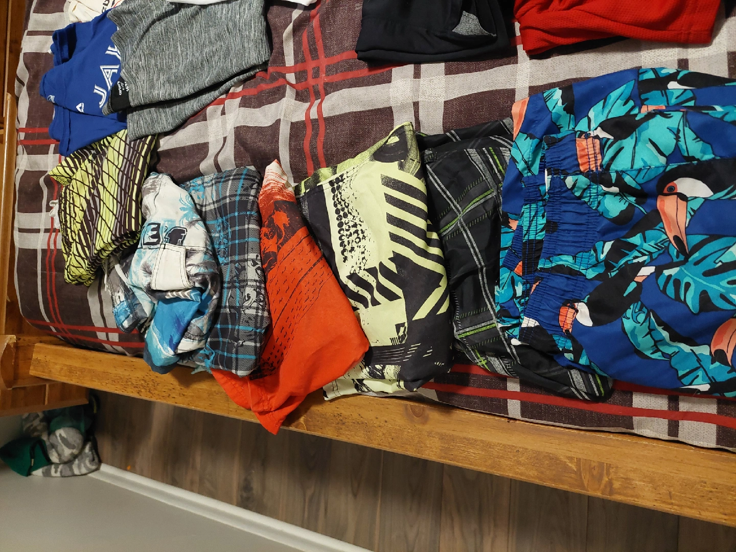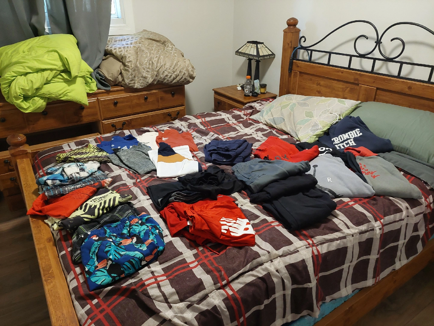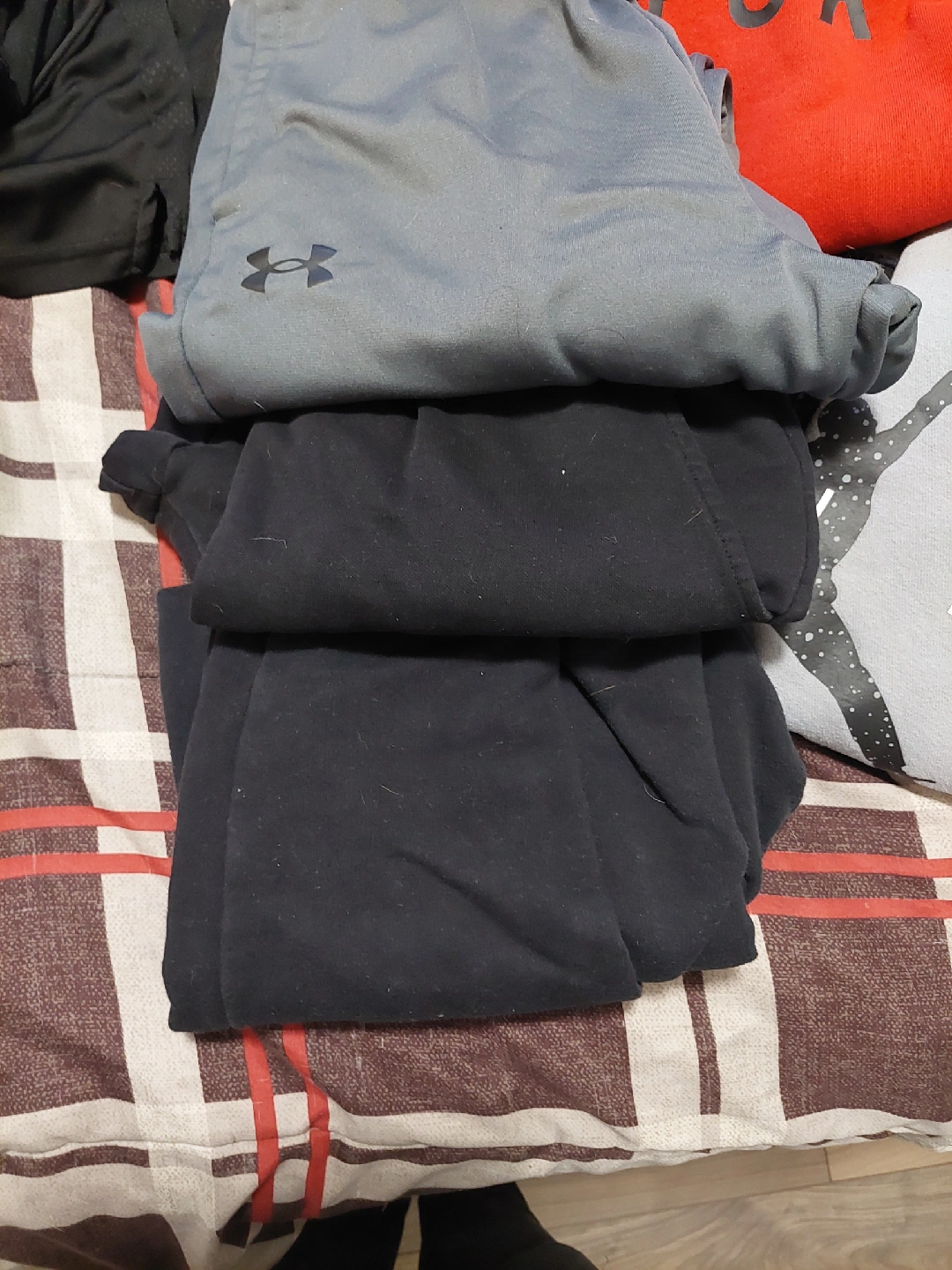 Selling a mixed lot of clothing items. Includes brands like Under Armour, Reebok, and New Balance. A variety of styles and colours are included in this lot size 12-14 also a box of clothes that may b under those sz for free but only if above is purchased