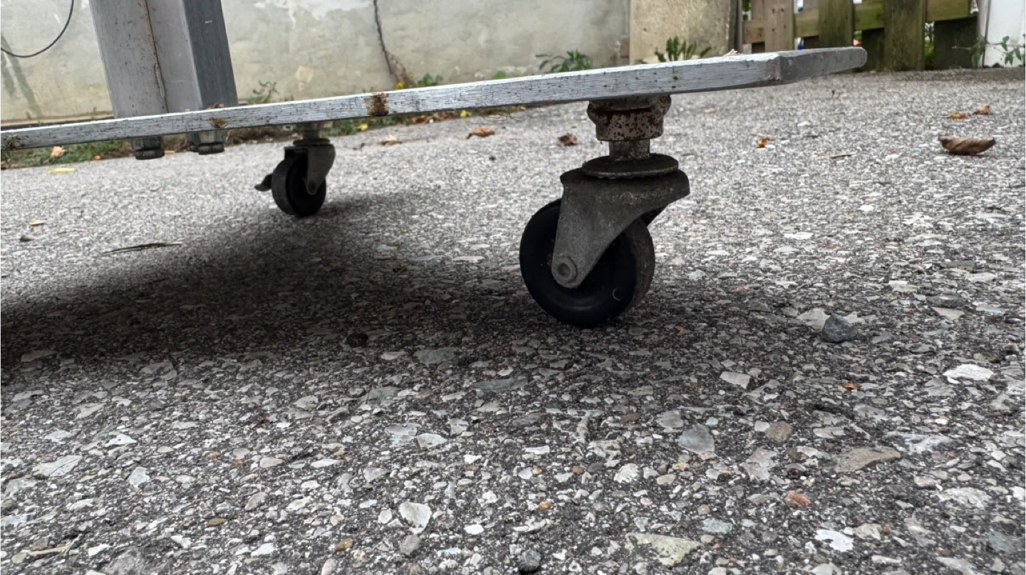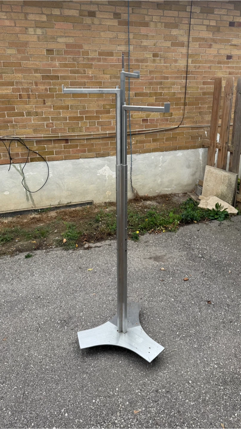 23Selling a sturdy clothing rack, perfect for displaying garments or organizing your wardrobe! Also suitable for commercial use. It's a silver metal garment display with a solid base and adjustable height. It has some signs of use but is still fully functional and ready to use