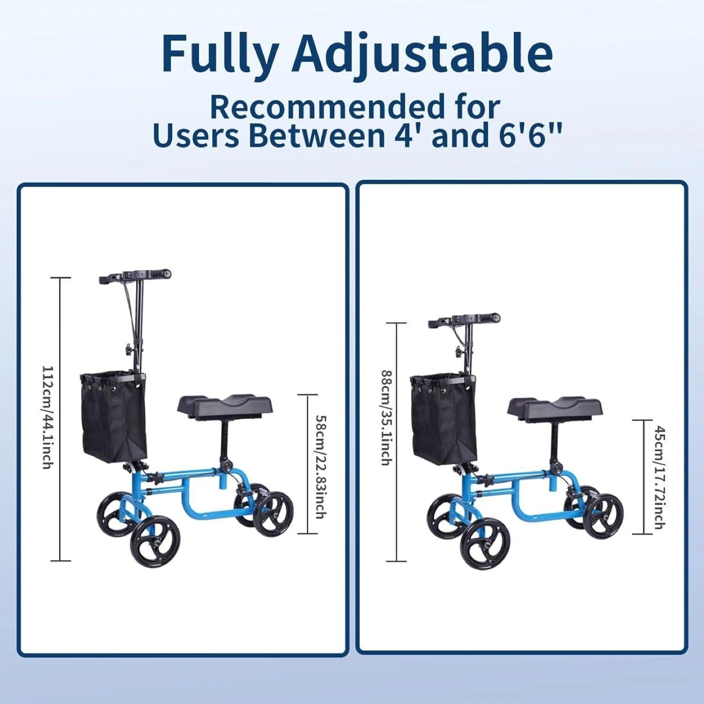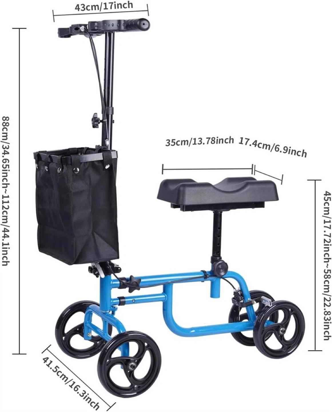 CloudHand Foldable Lightweight Knee Walker - Portable Knee Scooter featuring Basket, Adjustable Steering, and Brake System, Blue Brand new / never used See pics for measurements $100 - pickup in Binbrook or Etobicoke