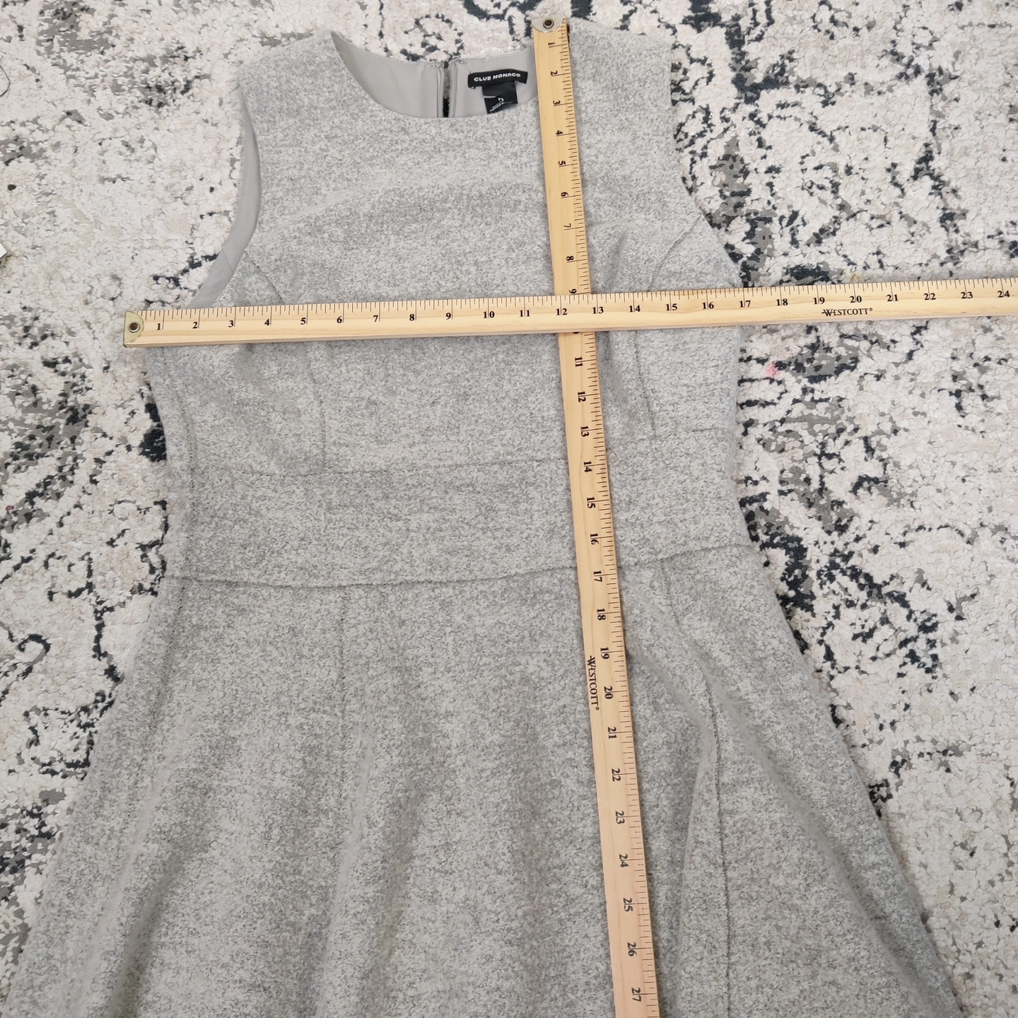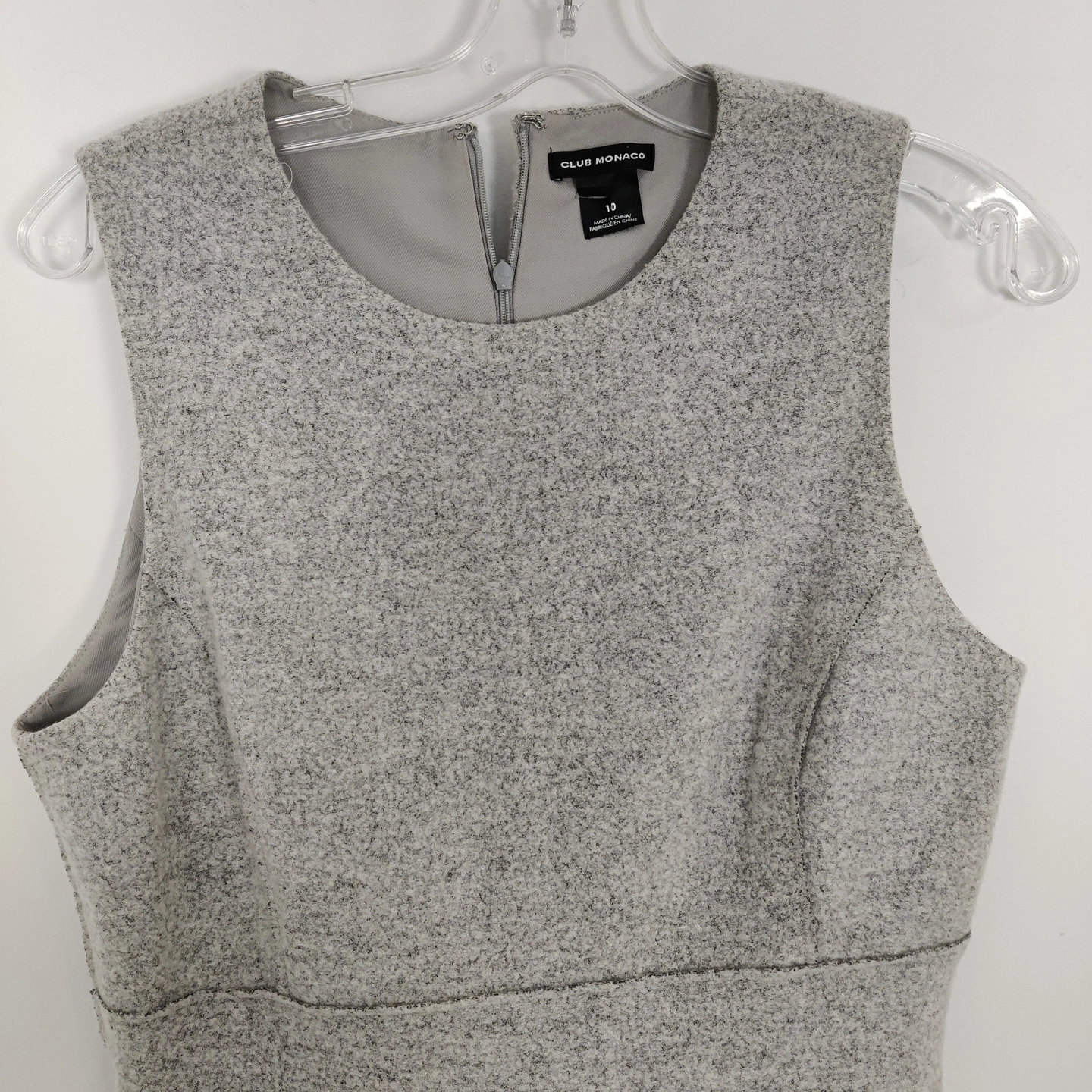 10Sophisticated and timeless, this Club Monaco gray sleeveless fit & flare dress is perfect for work or formal occasions. It offers structure and comfort while maintaining a polished silhouette. Features a hidden back zipper, waist seam for a flattering fit, and subtle pleats that create a graceful flow. Ideal for office wear, meetings, or elegant evenings out. Club Monaco dress, gray dress, fit and flare, sleeveless office dress, workwear dress, elegant gray dress, women’s business dress, A-line dress, formal wear, structured wool blend, timeless style, professional outfit, classic women’s fashion