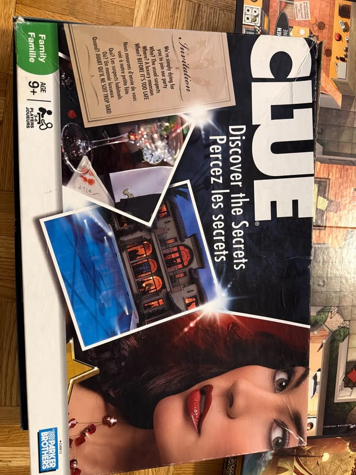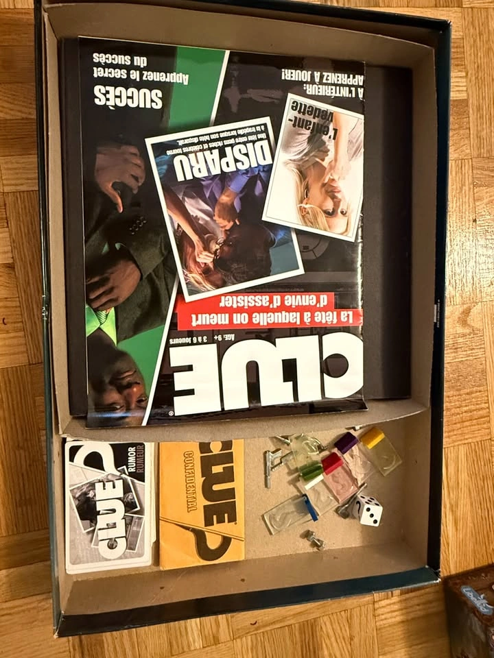 Clue – French Edition (Cluedo) in excellent condition, complete and ready to play. A mystery party game where you solve who committed the crime, where, and with what. Perfect for board game nights or anyone who enjoys a challenge en français! 🔍 Highlights: 3–6 players Ages 9+ All cards, tokens, and board included
