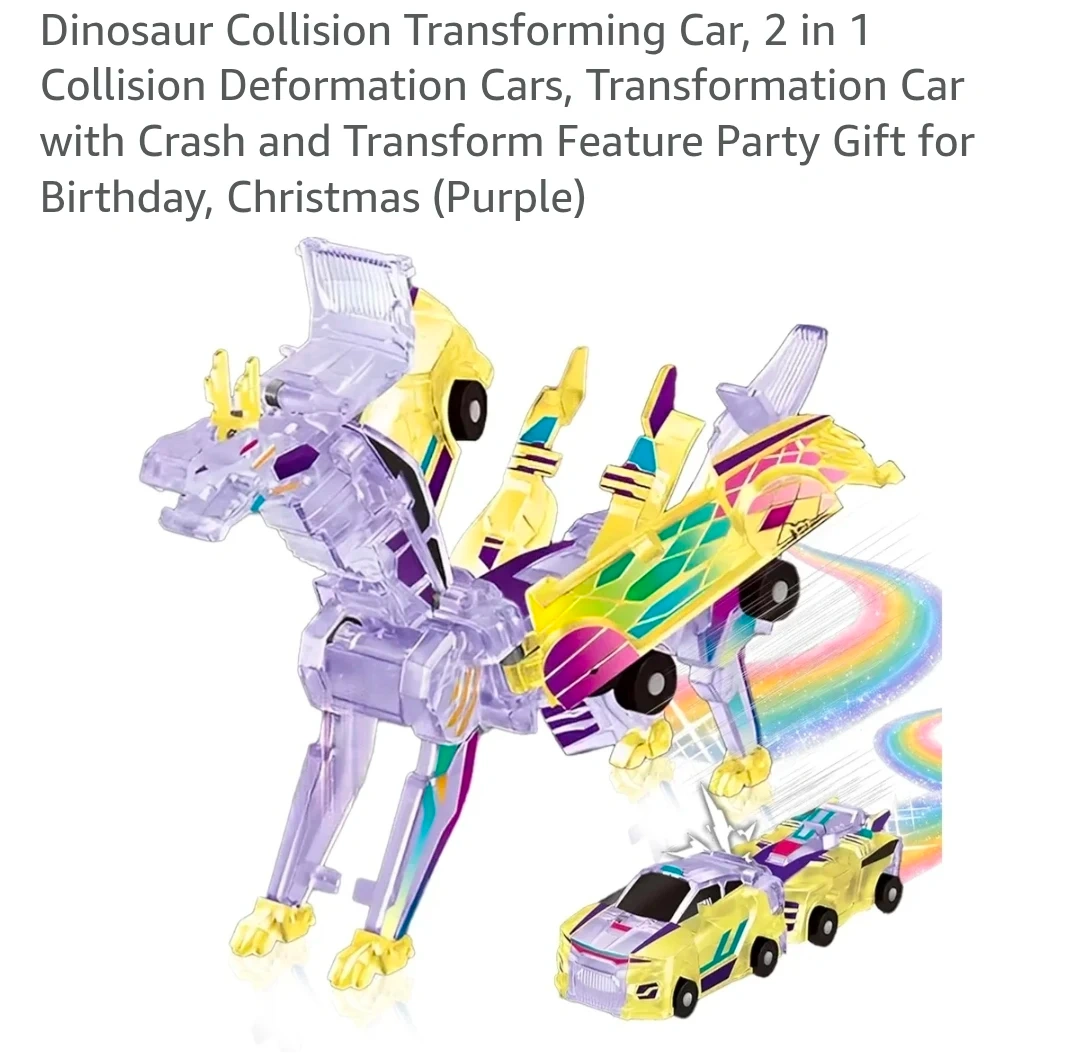 Check out this cool 2-in-1 Transforming Car! It's a Dinosaur Collision Transforming Car that easily changes from a car to a dinosaur and back. Great for birthday or Christmas gifts!