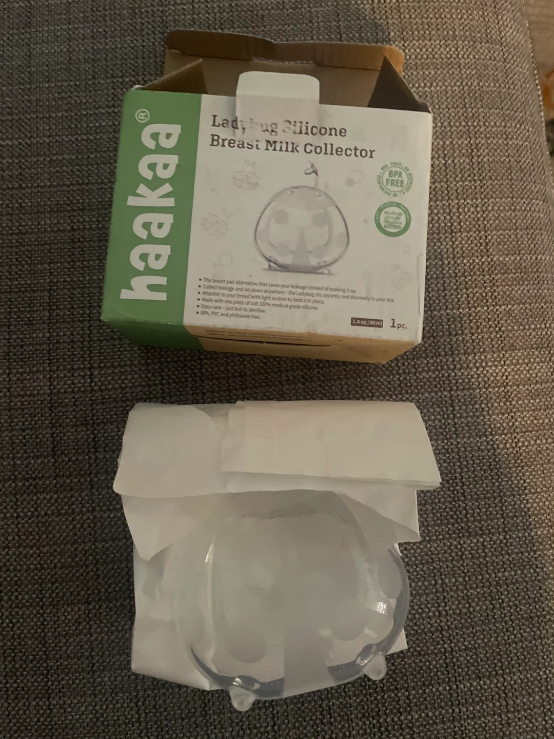 This Haakaa Ladybug Silicone Breast Milk Collector is a handy tool for collecting milk. It's made from BPA-free silicone and comes with its original box. The manufacturer's date is 2025-06-13.