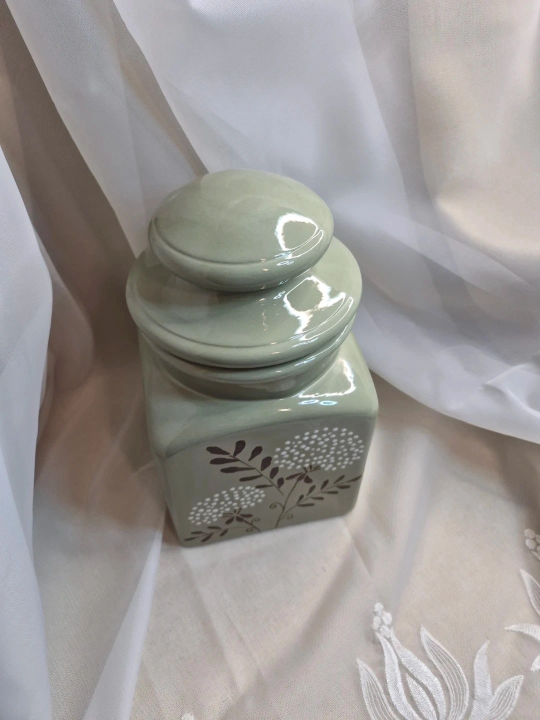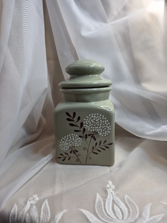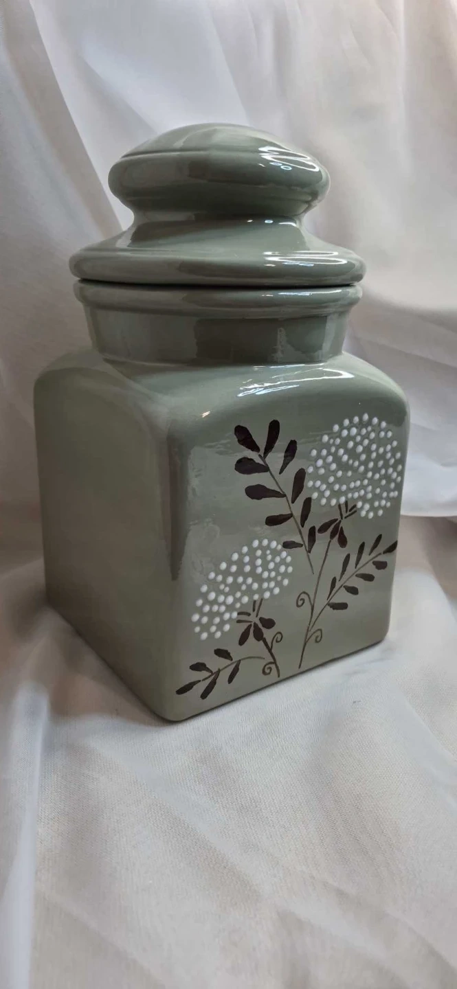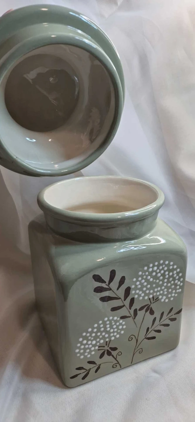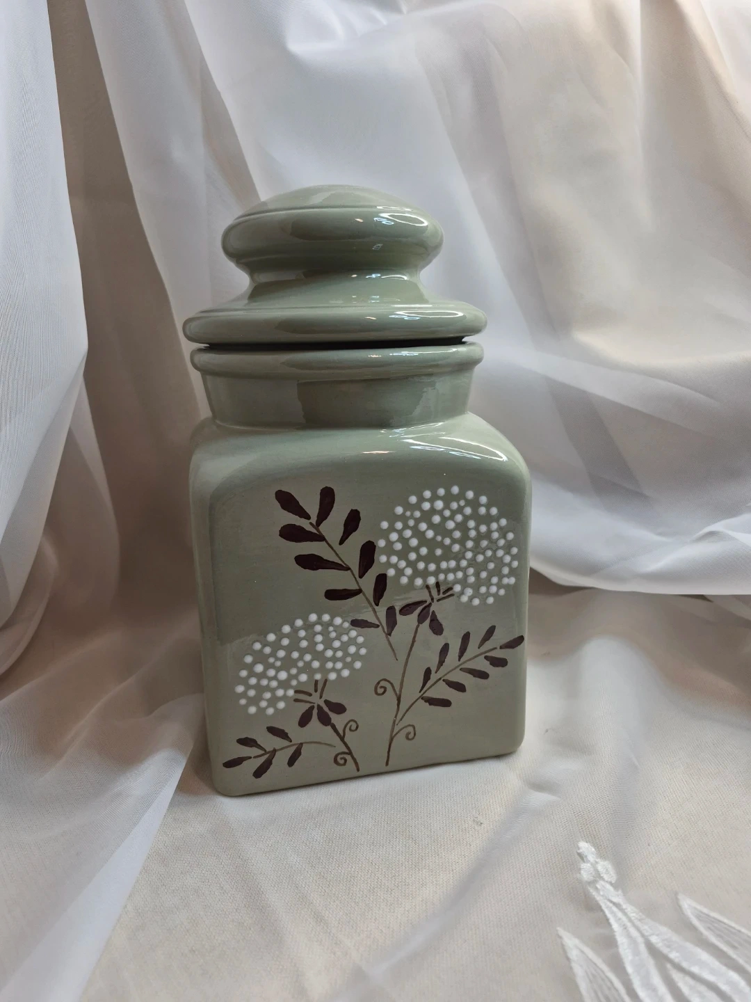 Beautiful Vintage 9" Total Tall Ceramic Hand Painted 1980's Canister Brand New Condition please see all pictures