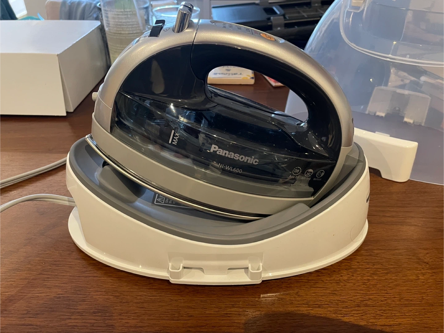 Selling a Panasonic NI-WL600 cordless iron used once. It's in great shape and ready to go! This model offers a smooth ironing experience without the hassle of cords. The included power base makes it easy to keep the iron charged and ready for use. Perfect for quick touch-ups or larger ironing tasks!