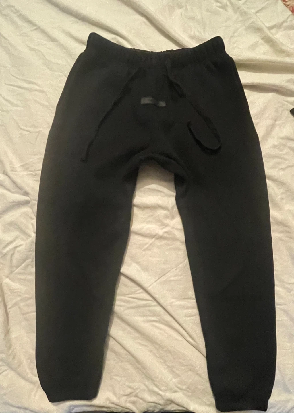 These black sweatpants are from Fear of God Essentials. They're made of 100% cotton and manufactured in Vietnam. Size L. send me a best offer or if you have anything to trade, let me know.