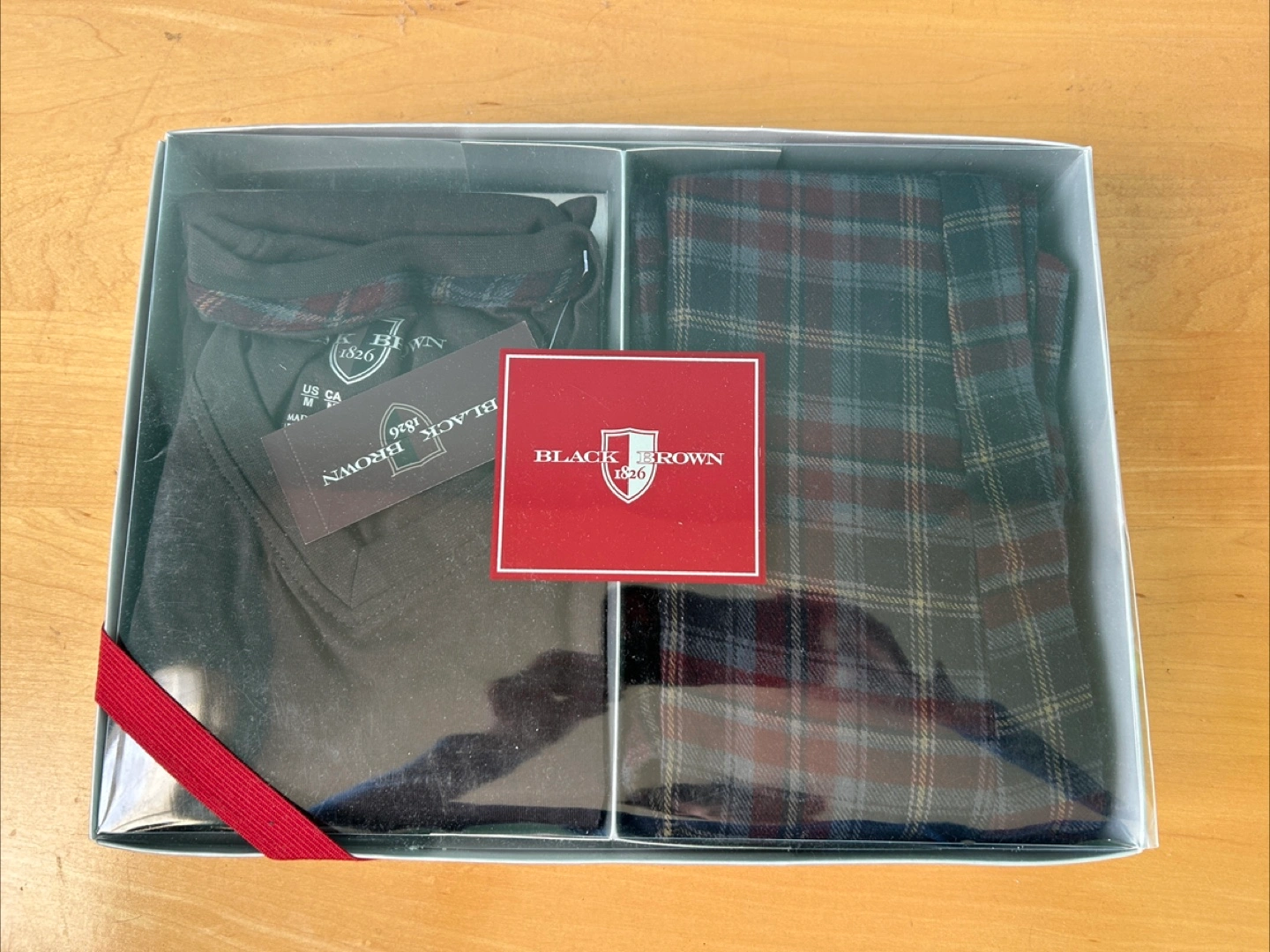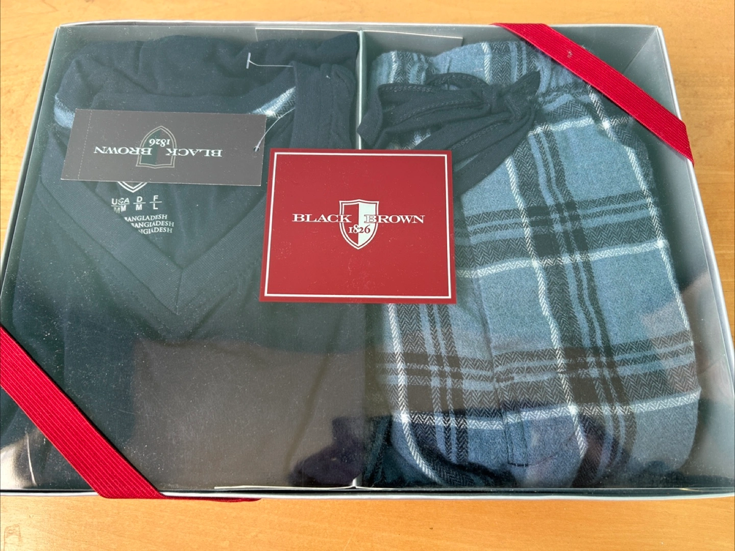 BNIB - Selling 2 pairs brand new Black Brown 1826 pajama sets in size M. It comes in the original box and includes a long-sleeved V-neck top and flannel pants with an elastic waist and side seam pockets. Top and bottom 100%cotton.