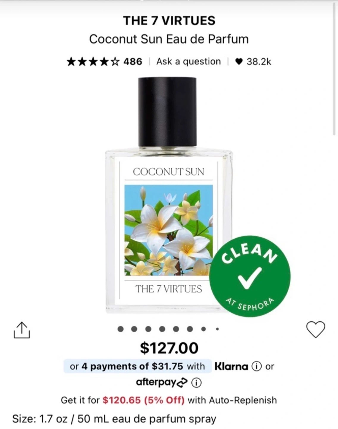 This is The 7 Virtues Coconut Sun Eau de Parfum. It's a 50 mL / 1.7 oz bottle. Features notes of jasmine and orange flower.