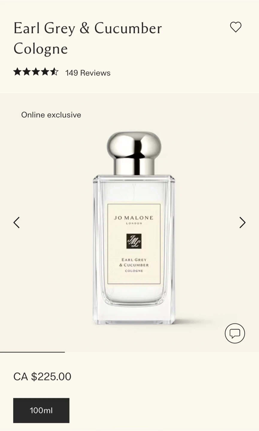 Jo Malone London Earl Grey & Cucumber Cologne. A refreshing scent with notes of bergamot, cucumber, and Earl Grey tea. It's a 100ml bottle. Perfect for everyday wear or special occasions!