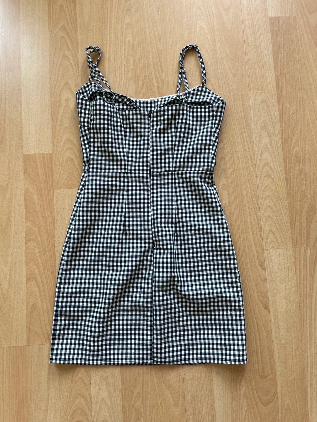 Black and white gingham mini dress with adjustable straps. Has a zipper closure in the back. The dress is in great condition. Size XS. Not available in store anymore, prices of online sellers are $20-40.