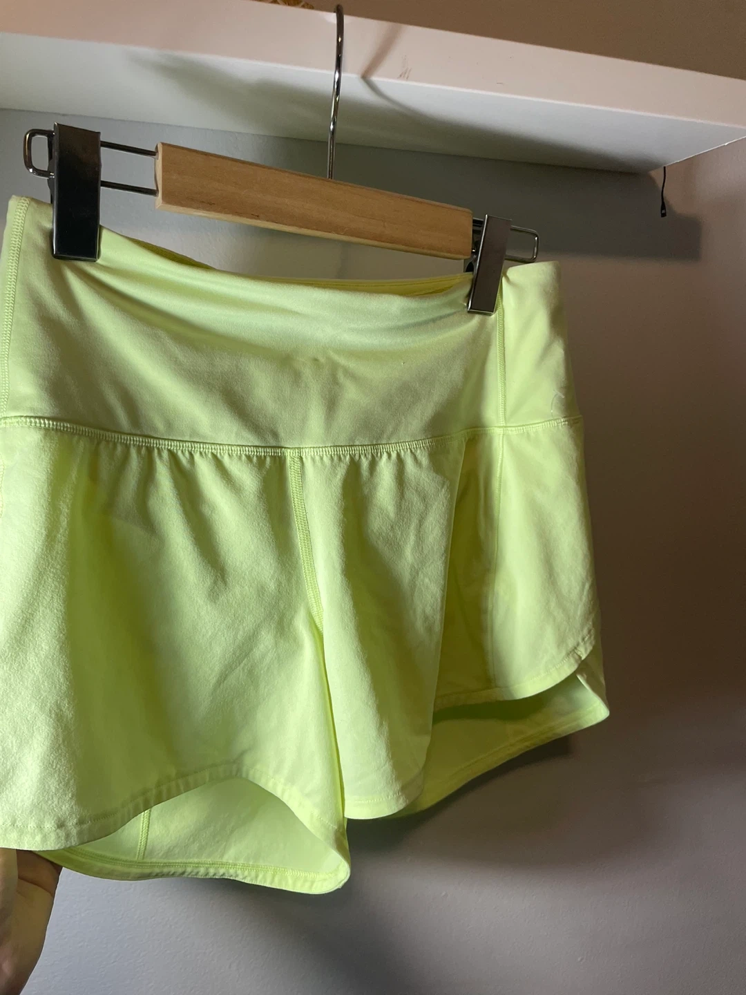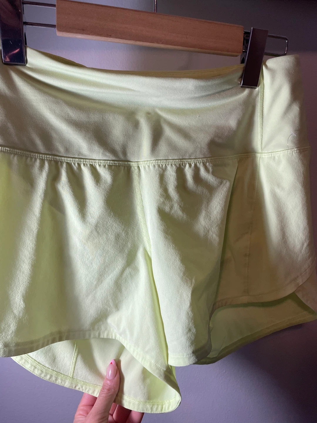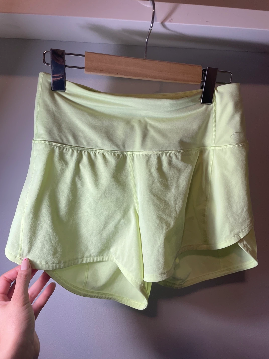 Selling a pair of Lululemon Speed Up High-Rise lined shorts in a vibrant yellow colour! These shorts are a size 4 and feature a 4-inch inseam with a mesh vent.
