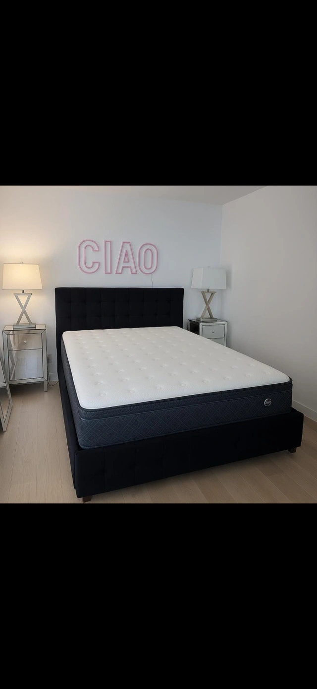 Queen Black Velvet Bed w/ Storage & Serta Mattress