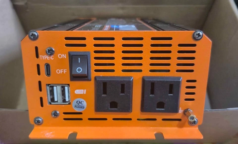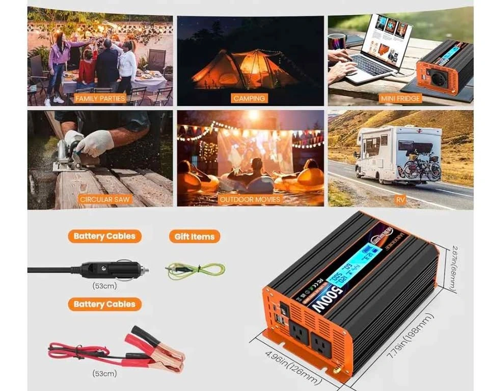 500 watt pure sine wave power inverter, DC 12V to AC 110/120V for home, RV, and off-grid solar systems with Type-C port, 2 AC outlets.