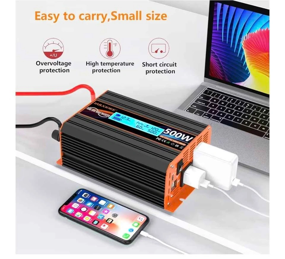 500W Pure Sine Wave Power Inverter DC 12V to AC 110/120V
