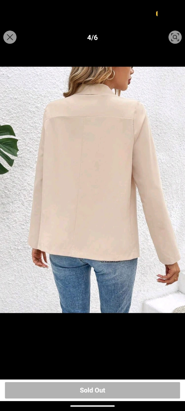 This SHEIN LUNE suit jacket comes in a light beige colour. It features a shawl collar and roll-up sleeves. Made from polyester blend material. Perfect for layering over tops.