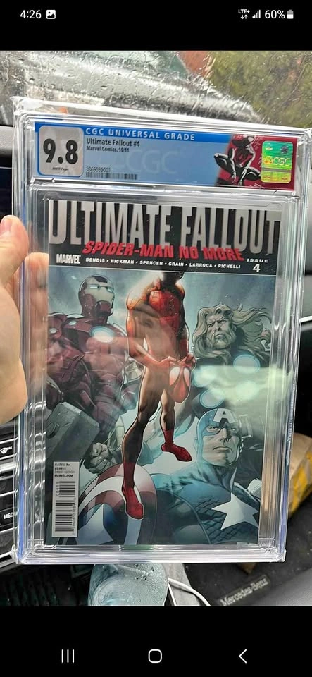 Up for sale is Ultimate Fallout #4 CGC 9.8 with a Custom Logo. It is the first appearance of Miles Morales.