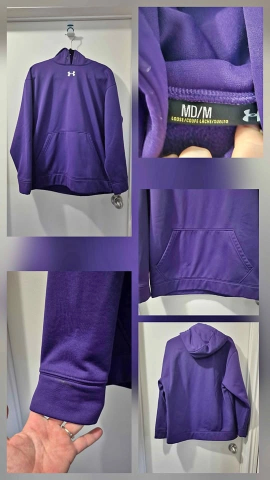 Medium: Purple Under Armour Sweater, small mark on cuff but not noticeable because of dark colour - $10