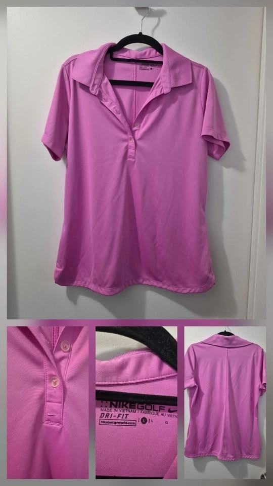 Large: Pink Nike Dri Fit/Golf Sport Shirt - $10