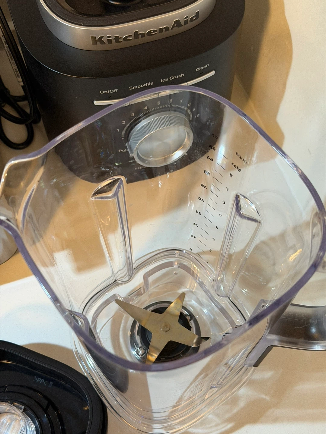 This KitchenAid blender features precision speed control with 10 settings, plus Pulse, Smoothie, Ice Crush, and Clean functions. It has a 2000 ml max capacity pitcher. This appliance is great for smoothies and crushing ice!