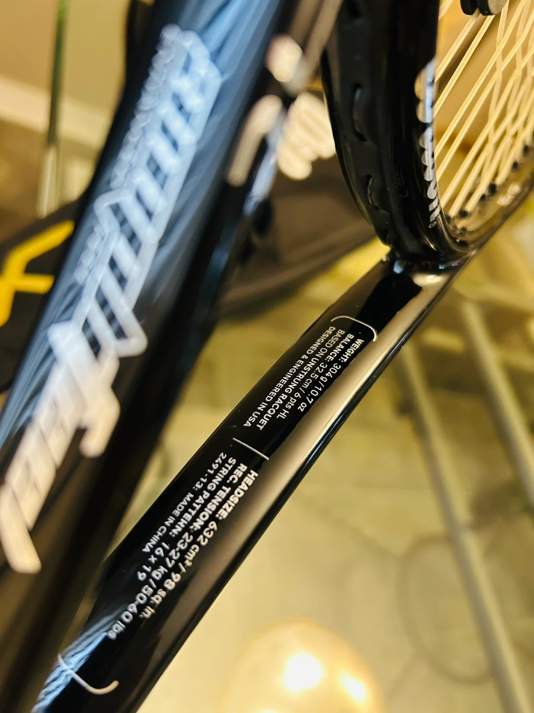 At 98 square inches, the slightly smaller headsize brings a tighter sweet spot with increased control potential for players able to consistently hit the sweet spot. The open string pattern enhances string movement for easier access to spin and inducing some trampoline effect for increased power generation. The racquet's weight is heavier than average which grants a stable experience for powerful groundstrokes and impactful return of serves while shots outside of the sweet spot benefit from a reduction of unwanted torque and an increase in power generation. The headlight balance of this racquet further enhances a dynamic game's power and touch with faster racquet head speed for improved spin and power generation paired with quick and decisive volleys. The racquet is also quite flexible allowing for a longer dwell-time (the time the ball is in contact with the strings) and therefore an increased feel for the ball.