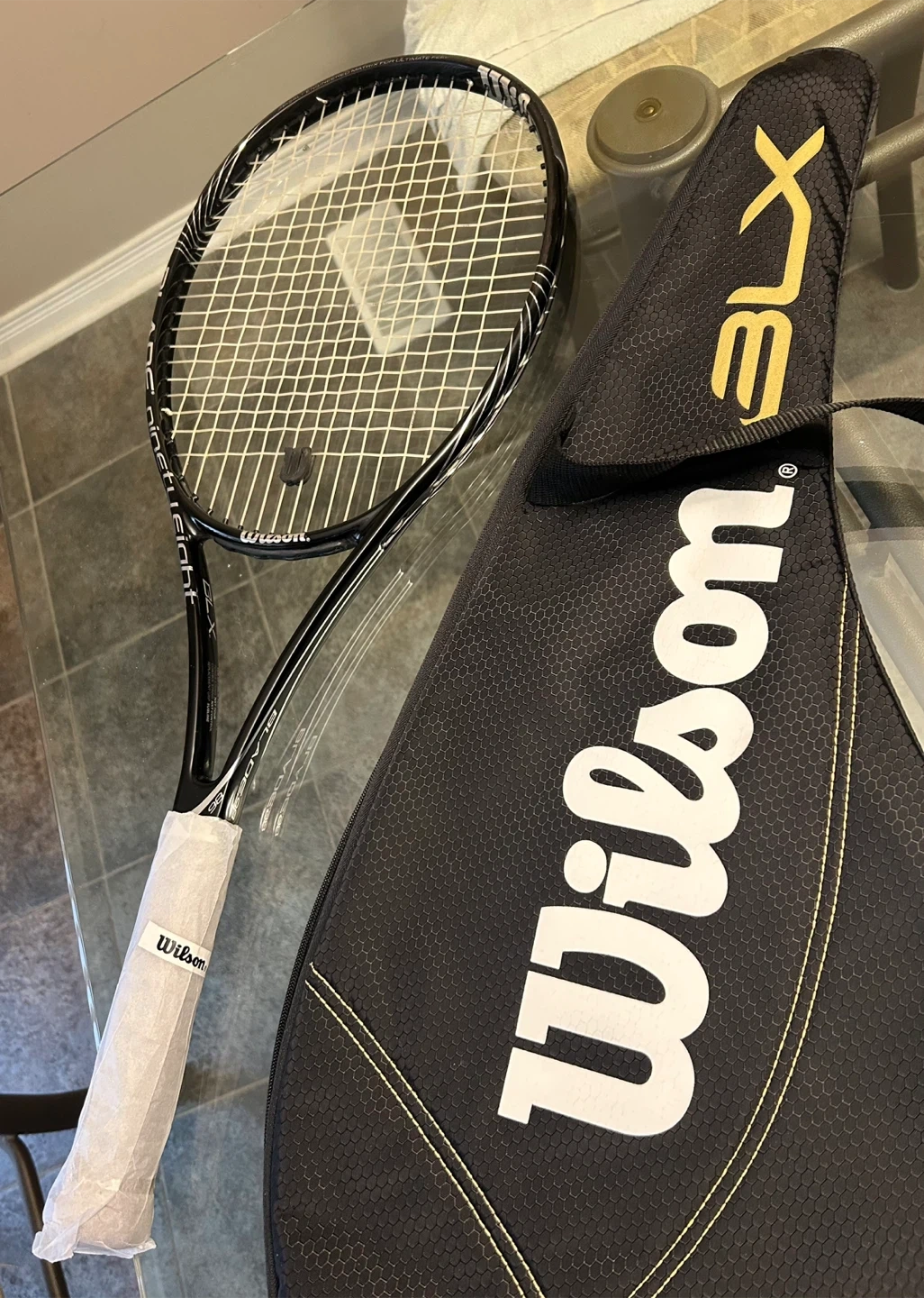 This Performance is Good for Advanced Players who prefer sharper and more stable response. Mint condition comes with Wilson BLX Carrying Bag.