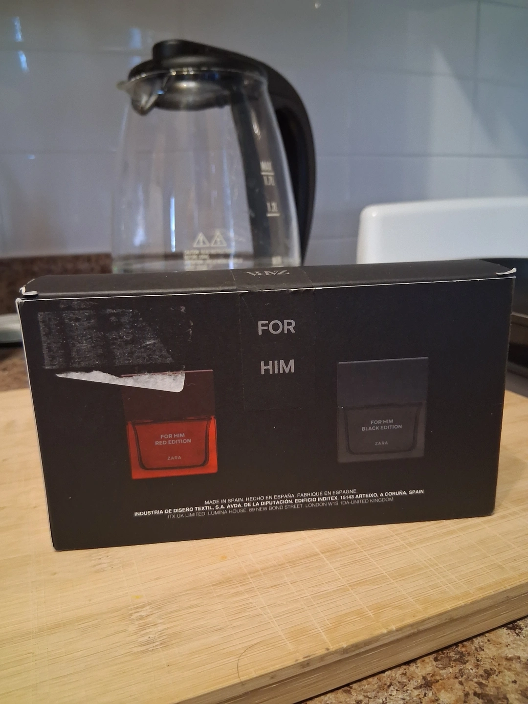 I am selling a Brand New authentic Set of Zara FOR HIM BLACK + RED EDITION 2 X 1.69 oz (50 ml) EDT/EDP Spray . It is New and never used. The Box was opened to take pictures. It sell on Ebay for well over $100.00