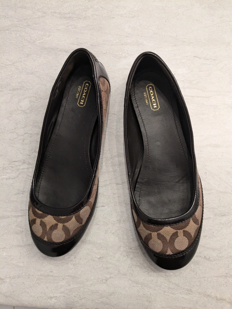 Selling a pair of Coach ballet flats. feature the classic Coach logo pattern. Great condition pickup only cash only