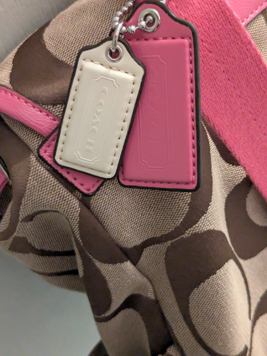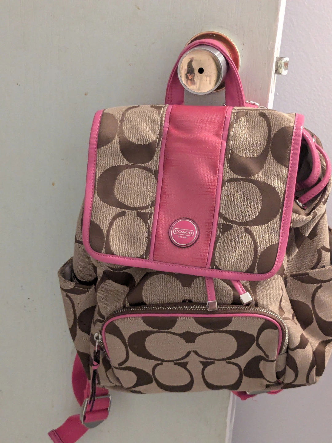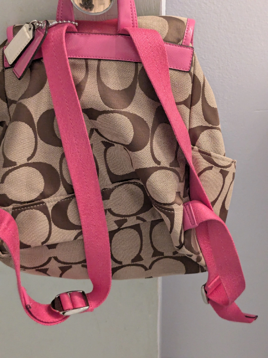Coach Authentic backpack! It features the classic Coach signature print with pink leather accents. The style number is C1361-F21928. It's in great condition and ready for a new home pickup only cash only please