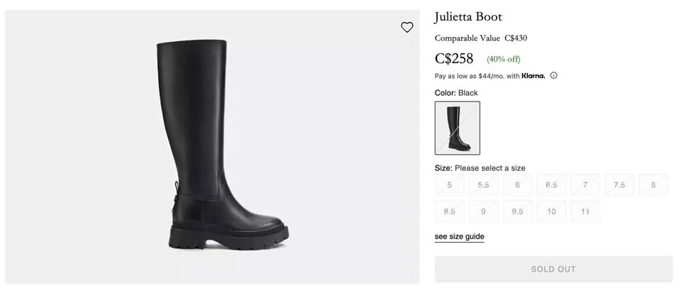 23Size: 6,5 šPick up: Steeles&Bathurst st. * Shaft Height: 15.75" * Shaft Circumference: 15.5" * Leather upper * Man-made leather lining and footbed * Rubber outsole