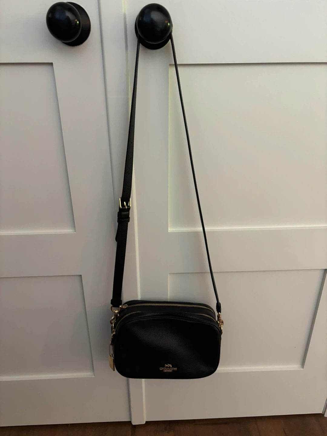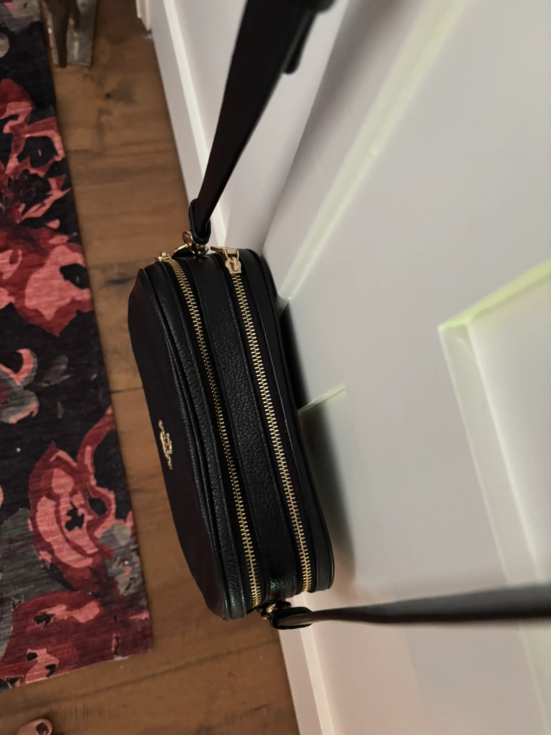 Selling a stylish Coach crossbody bag in black leather! It's in great condition and perfect for everyday use. The bag features a convenient adjustable strap and a secure zip-top closure. It's a great size for carrying your essentials while keeping your hands free