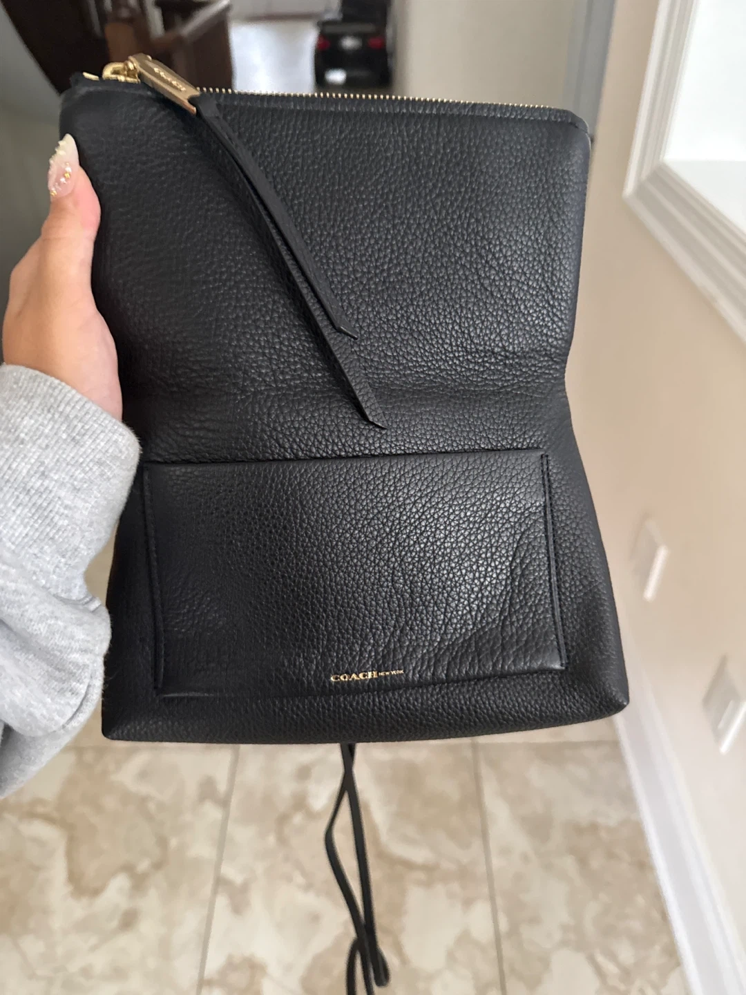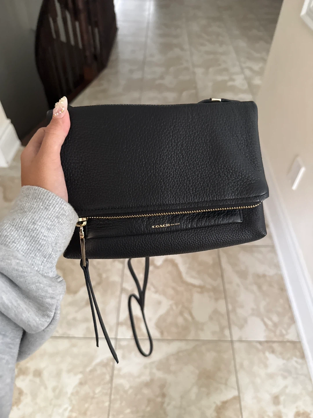 Selling a gently used Coach black leather foldover clutch. It's in great condition and perfect for carrying your essentials. The leather is soft and supple, and the foldover design adds a touch of elegance. It's a versatile piece that can be dressed up or down!