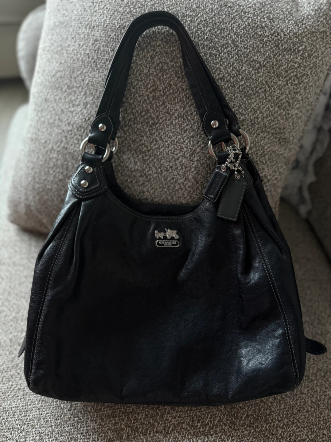 Selling a Coach black leather hobo bag. It's in great condition and has a classic design. Perfect for everyday use!
