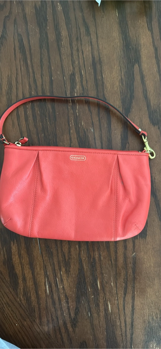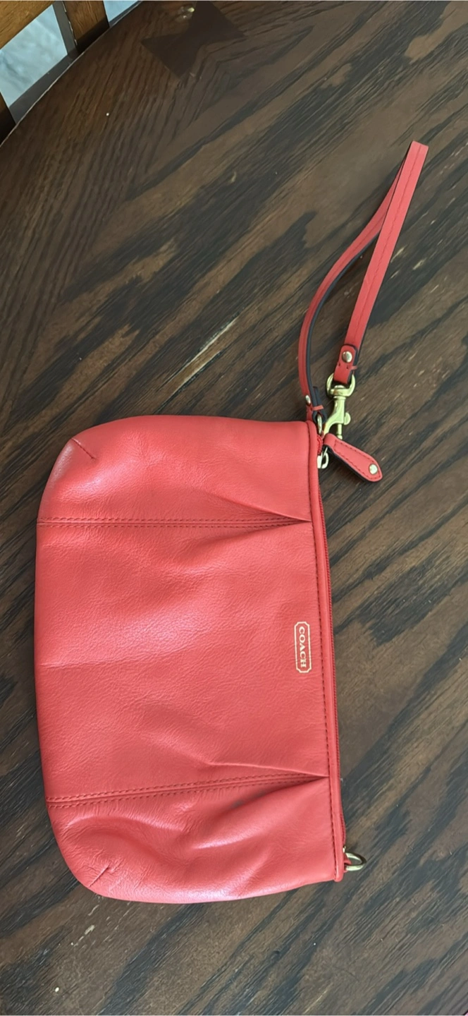 Selling a coral Coach wristlet. It's in great condition and perfect for carrying essentials! The colour is a vibrant coral.