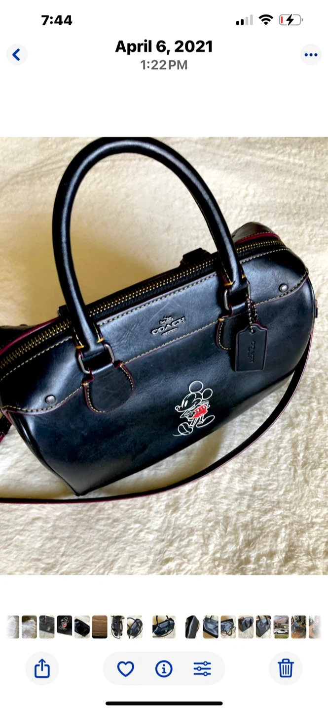 91Selling a Coach Disney limited edition bag featuring Mickey Mouse! It's in great condition and perfect for any Disney fan or Coach collector. The bag is black with a Mickey Mouse design and has a classic Coach style. Length: 9 inches (22.86 cm) Height: 6.5 inches (16.51 cm) Width: 5 inches (12.7 cm)