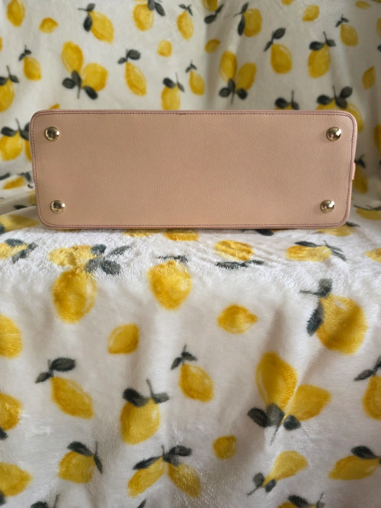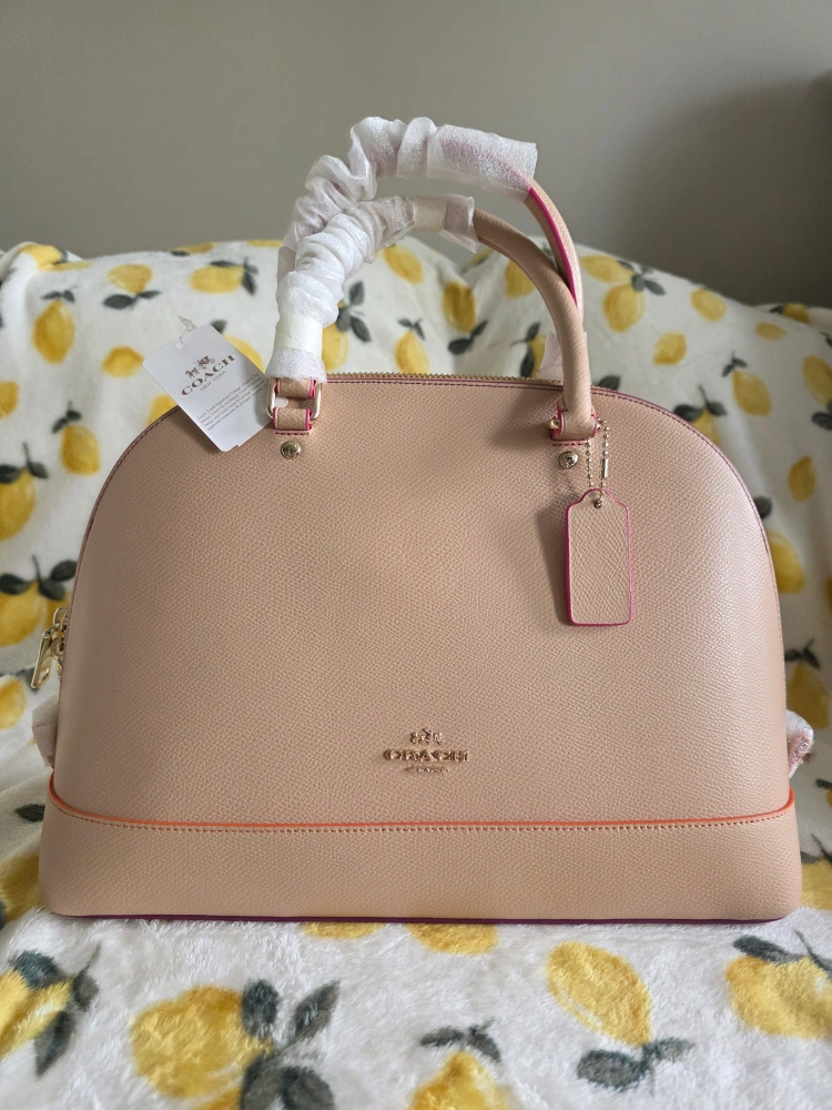37⭕️ New with tag ⭕️ Neutral beige colour with orange, dark purple, and pink accents ⭕️ Dark purple lining inside ⭕️ Height: 9 inches ⭕️ Length: 12.5 inches ⭕️ Width: 4.5 inches ⭕️ Never used, size too big for me ⭕️ Comes with crossbody strap ⭕️ No dustbag, this was purchased online 📍 Meet up in Kingsway Mall or at Purolator store in 11220 104 Ave. NW Edmonton. Thanks for dropping by! 👍