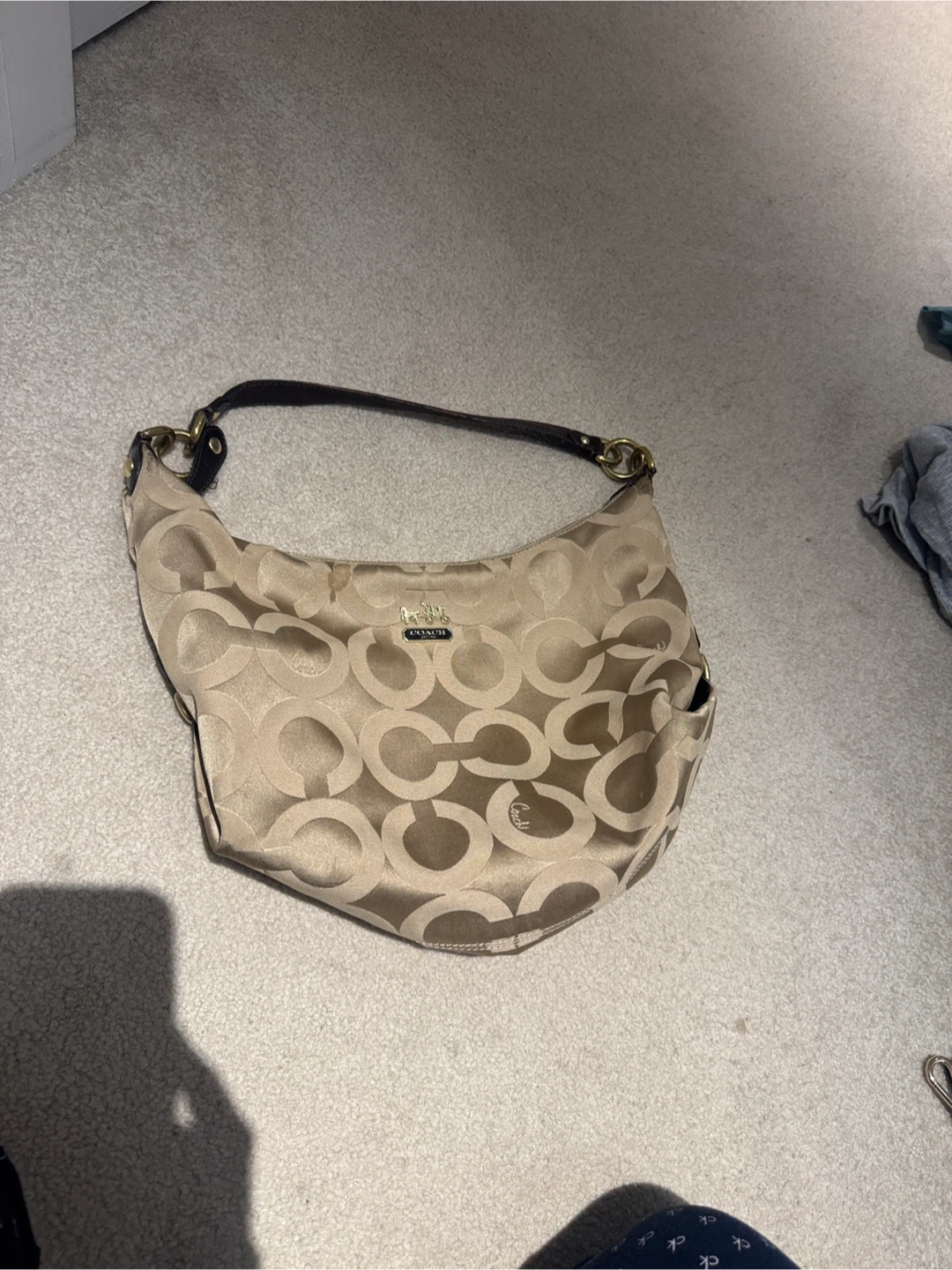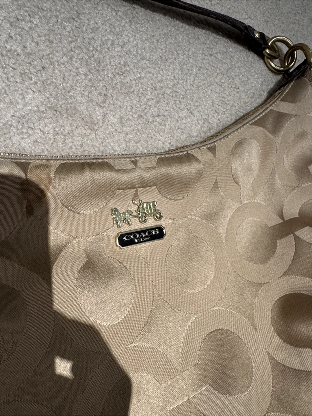 11Selling a Coach Est. 1941 hobo bag. It features the classic Coach logo pattern and a comfortable shoulder strap. Perfect for everyday use!