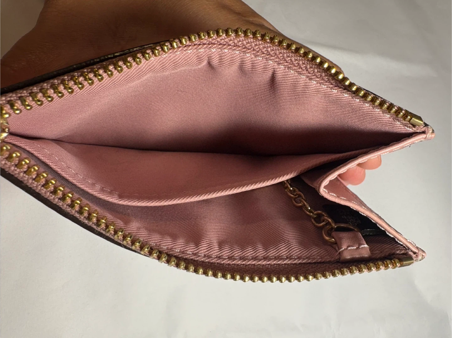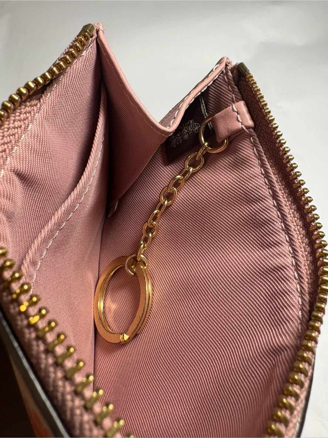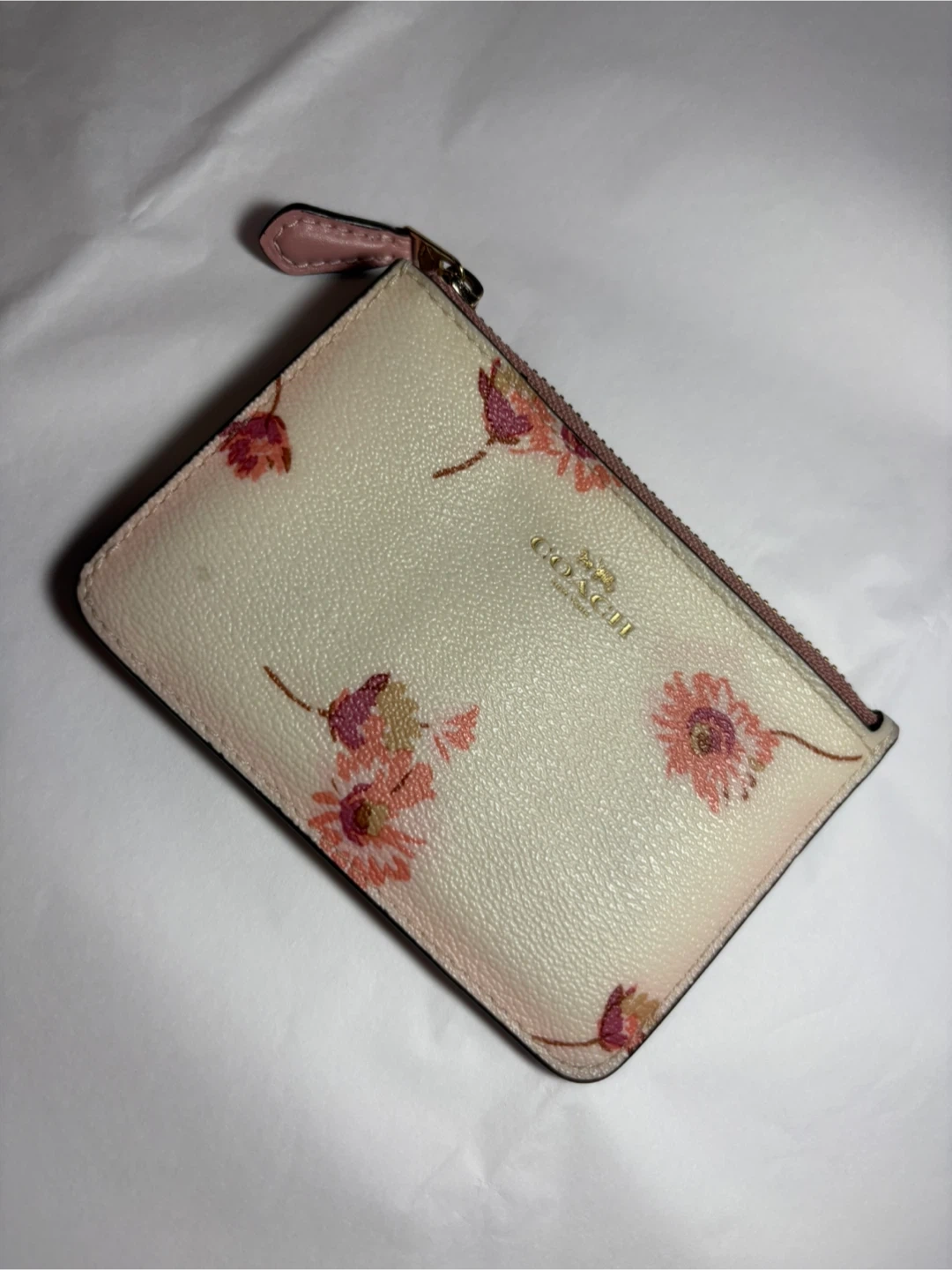 65Selling a cute Coach card case with a floral print! It's perfect for carrying your essential cards and has a handy key ring inside. The interior is a lovely pink colour. Great for keeping things organized in style.