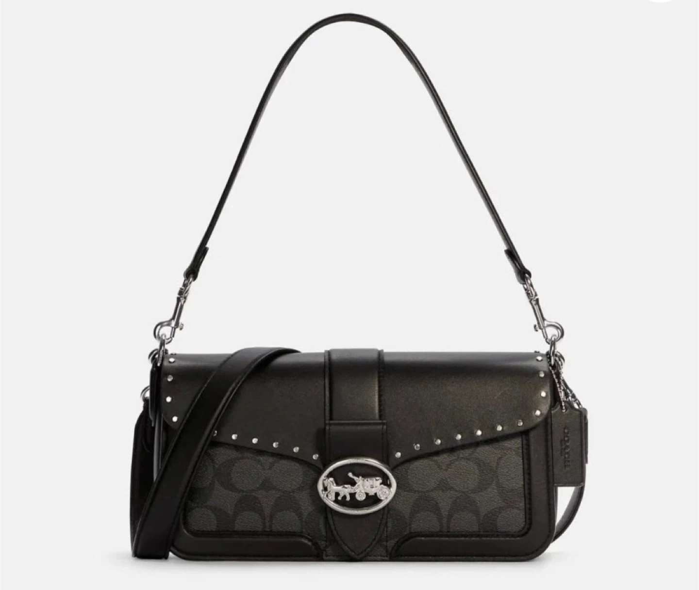 10Selling a Coach Georgie Saddle Bag in signature jacquard! It's a stylish and versatile bag perfect for everyday use. The bag features the iconic Coach signature pattern and has a sleek saddle bag design. It's in great condition with few minor scratches. Not easily noticeable.