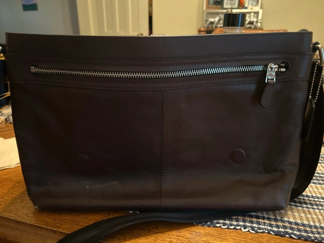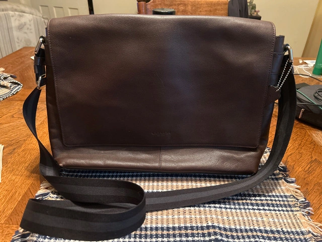 This is a Coach laptop bag crafted from high-quality brown leather, perfect for carrying your laptop and other essentials in style. The bag features a spacious main compartment, an adjustable shoulder strap, and several pockets for organization. This bag is used, and shows signs of wear, but it is ready for use. * Material: Leather * Colour: Brown * Style: Messenger/Shoulder Bag * Features: Adjustable Strap, Pockets I've estimated the price based on comparable Kijiji listings. If you're seeing this ad, it means the bag is still available, so feel free to reach out!