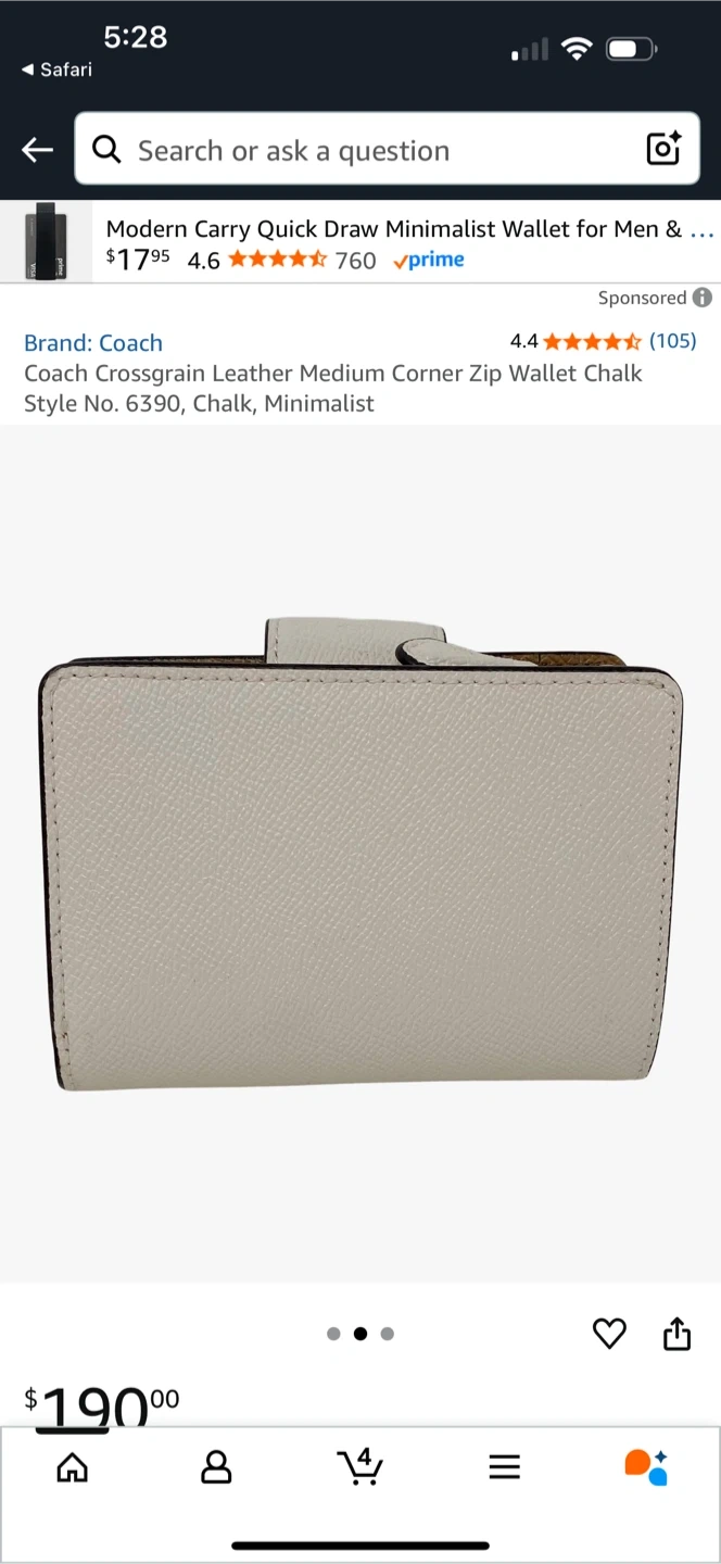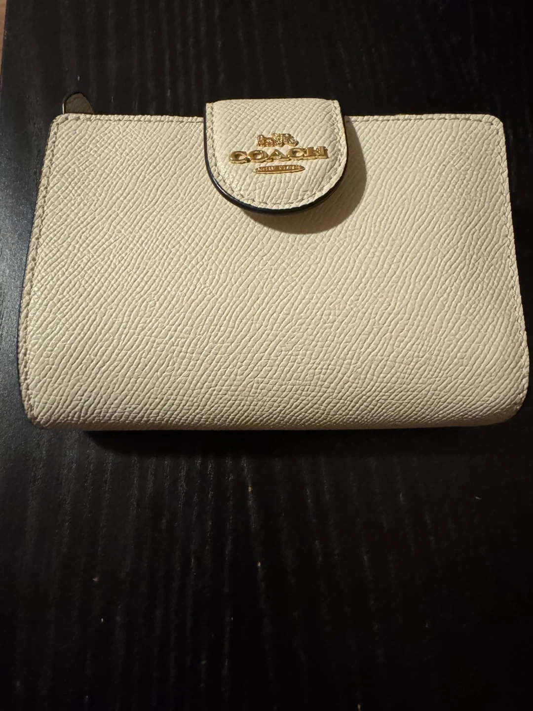 21Selling a Coach leather corner zip wallet in chalk. It's a medium-sized wallet, perfect for everyday use.
