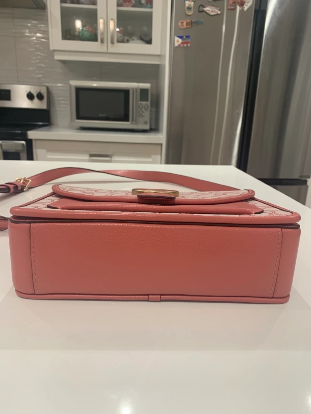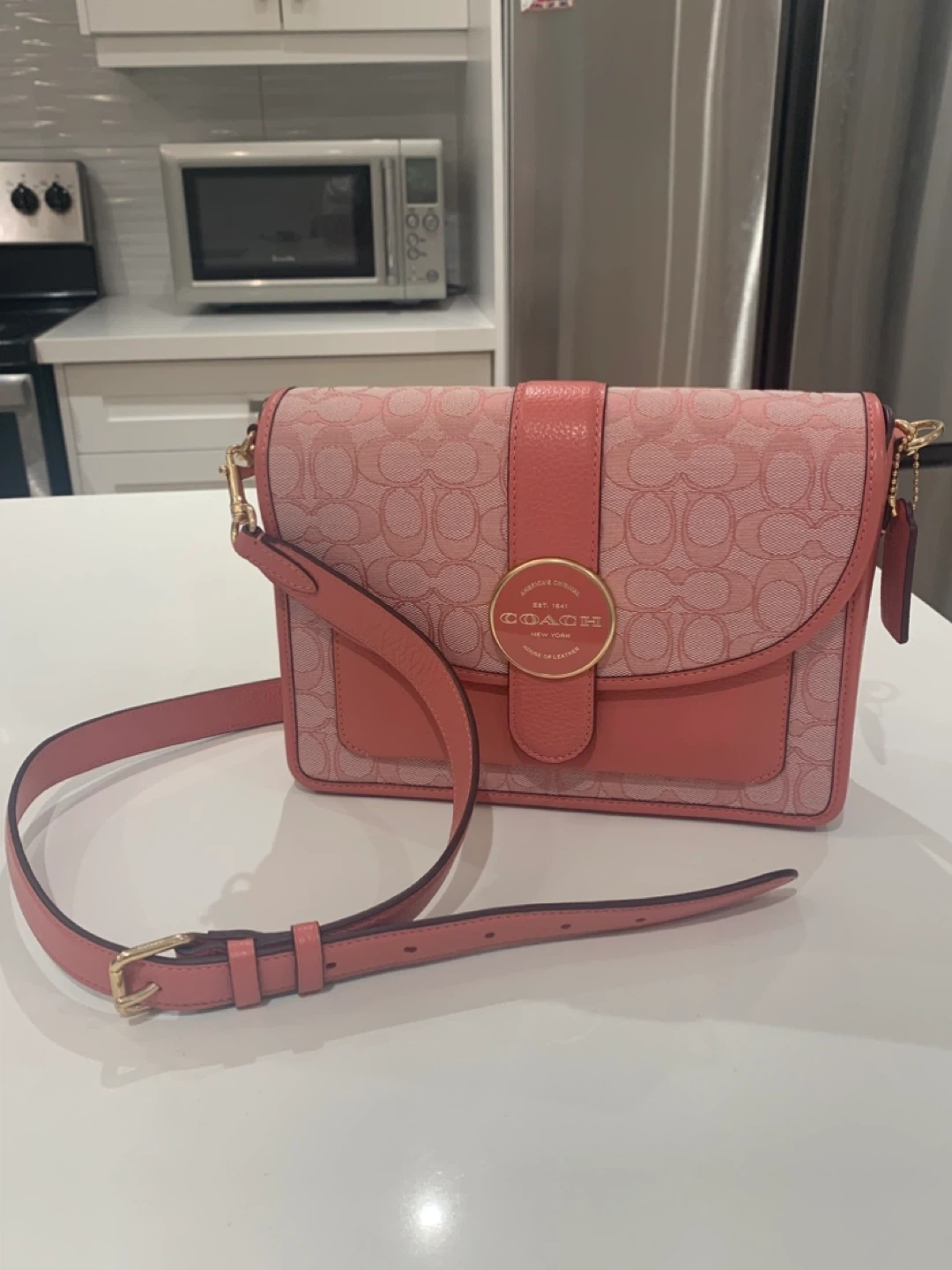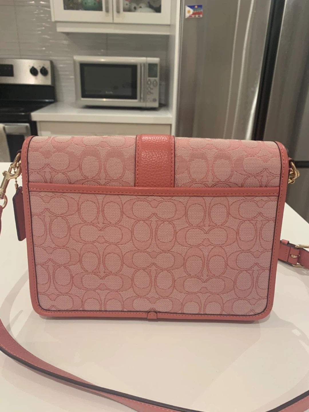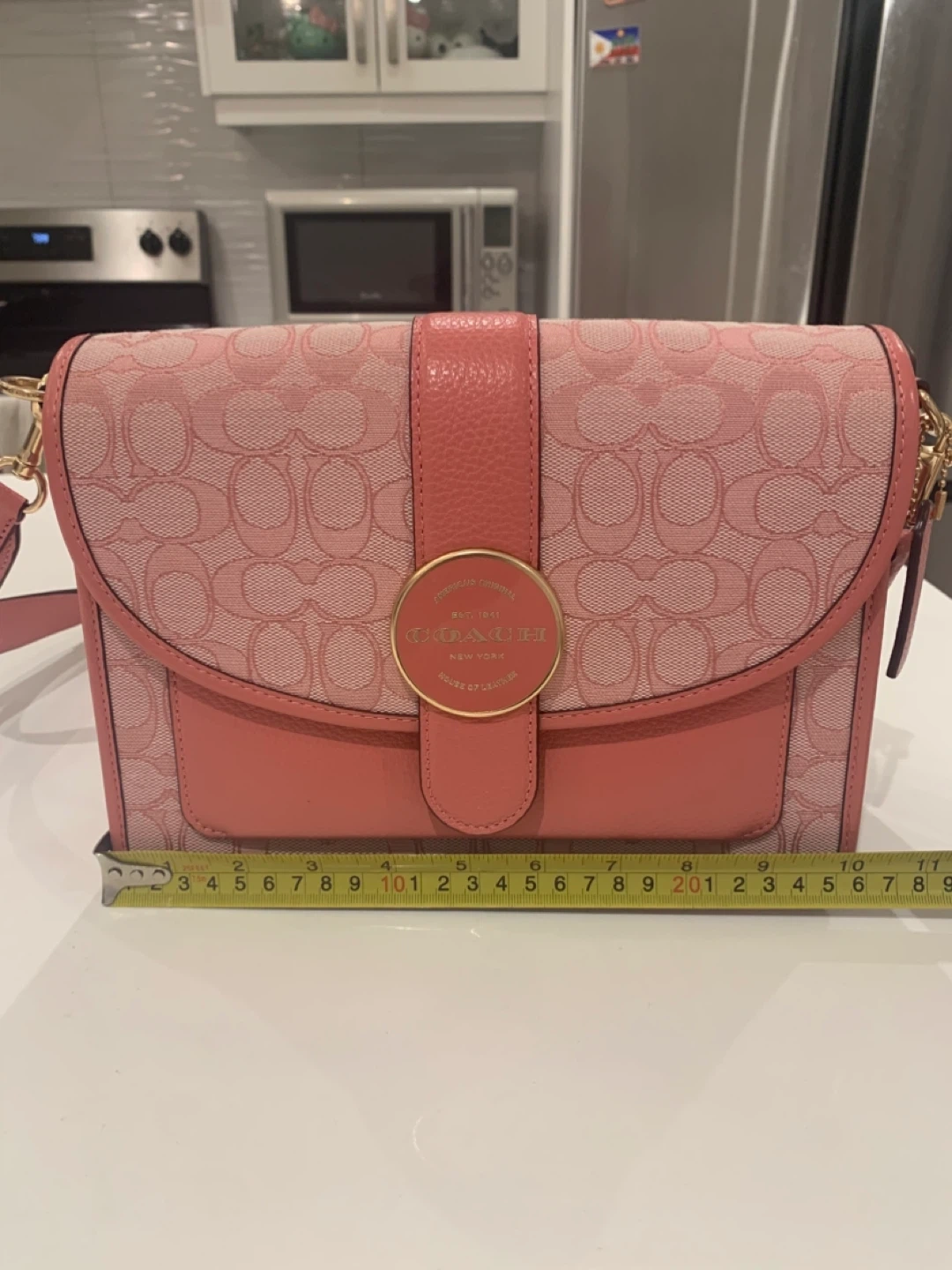 518🩷 Serious buyers only please! 🎀 This is a cute Coach shoulder bag in a lovely pink colour! It features a leather strap and the classic Coach logo pattern. 🩷 There are some minor signs of wear, as shown in the last photo. The model number is A2279-C8307. It measures approximately 9 inches in length and 7 inches in height.