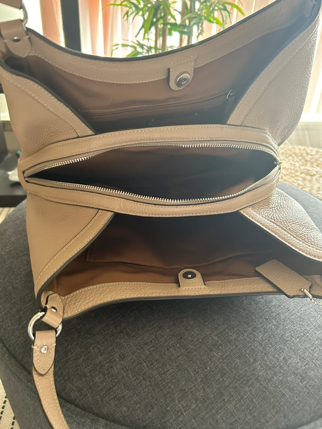 55This is a lovely Coach shoulder bag in a neutral colour. It's in great condition and has lots of room inside for all your essentials. Perfect for everyday use!