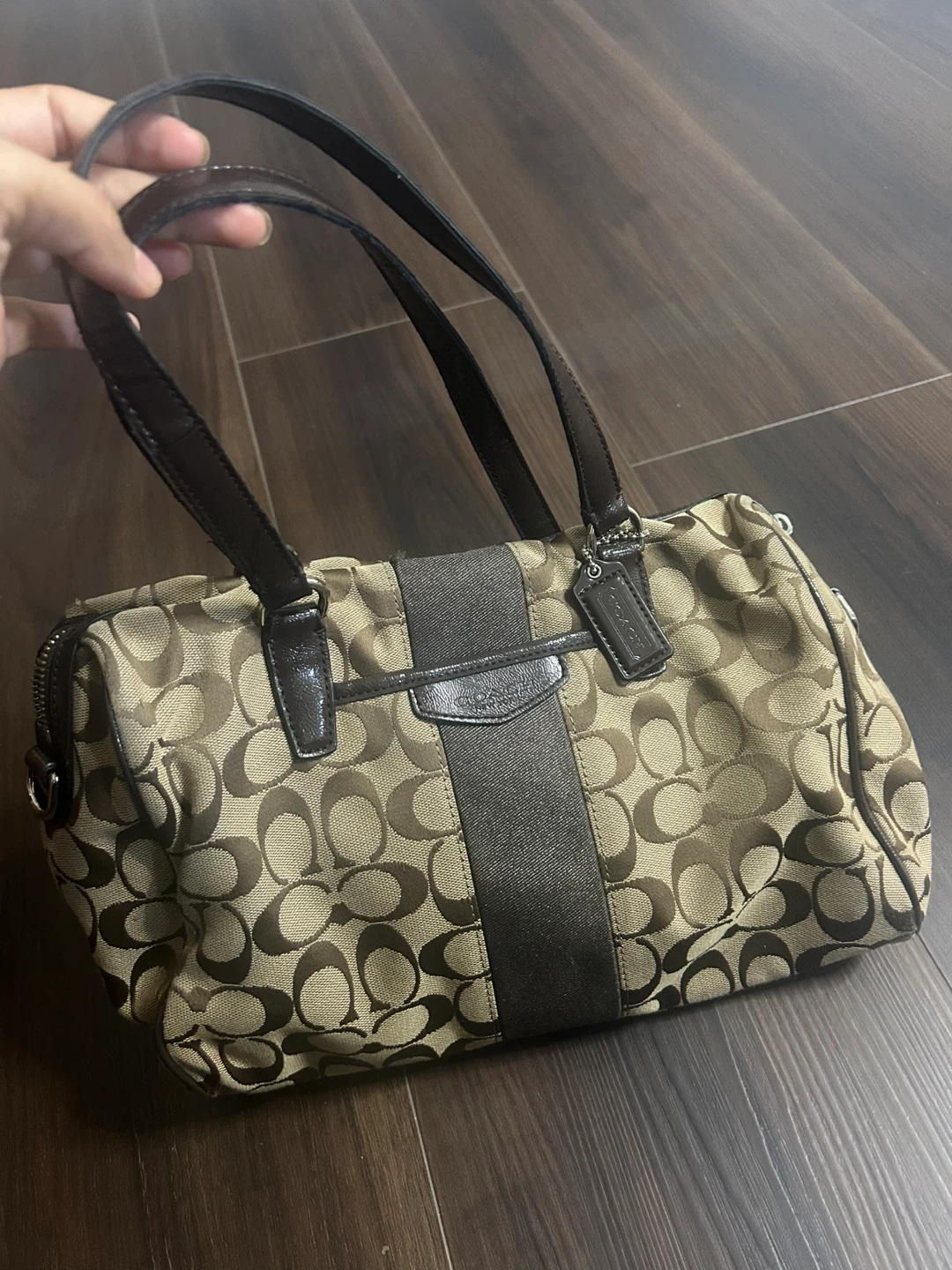 Selling a Coach satchel bag with the signature "C" design in brown. It's in great condition and perfect for everyday use! The interior is also brown and features a zip pocket.