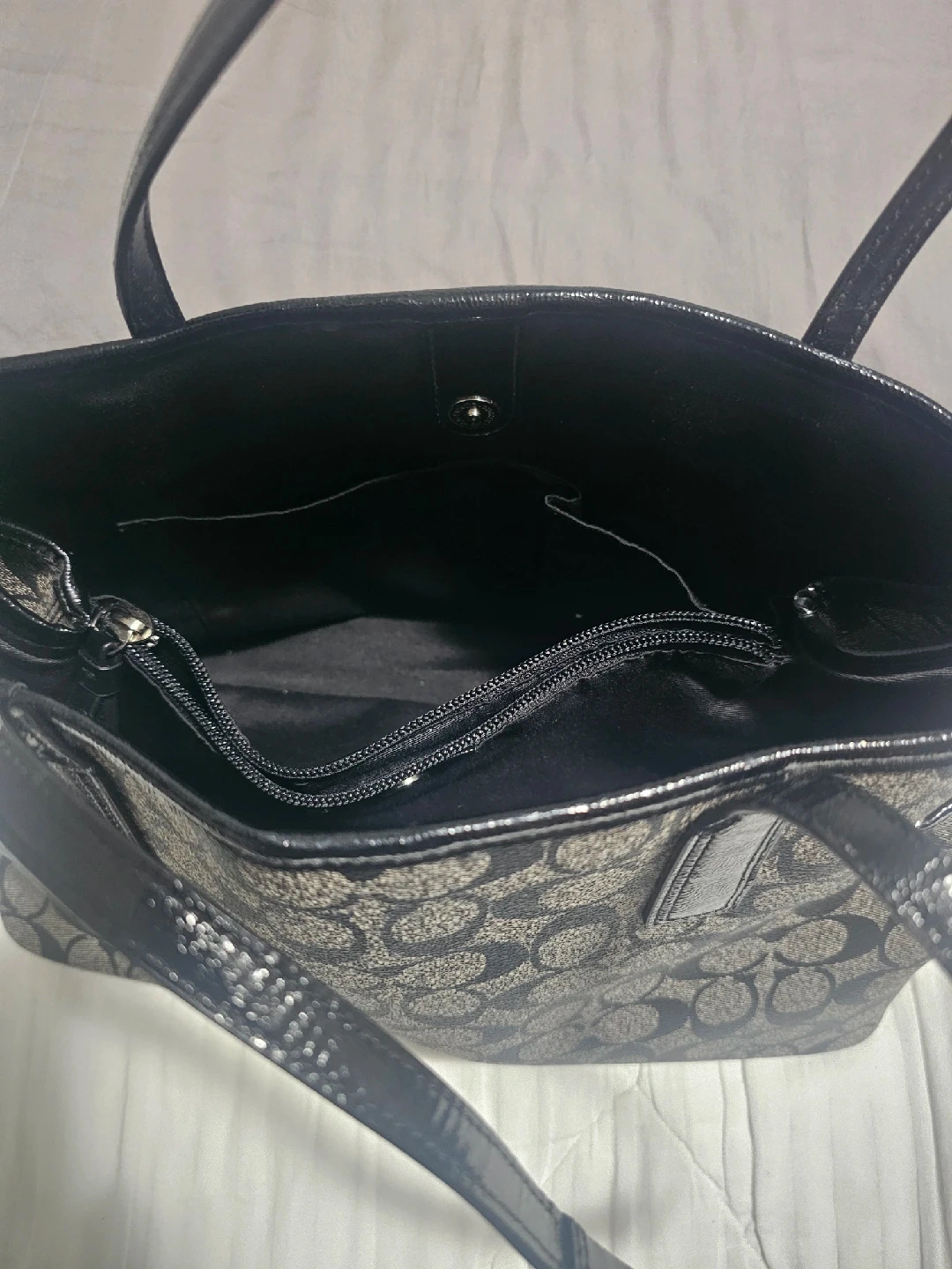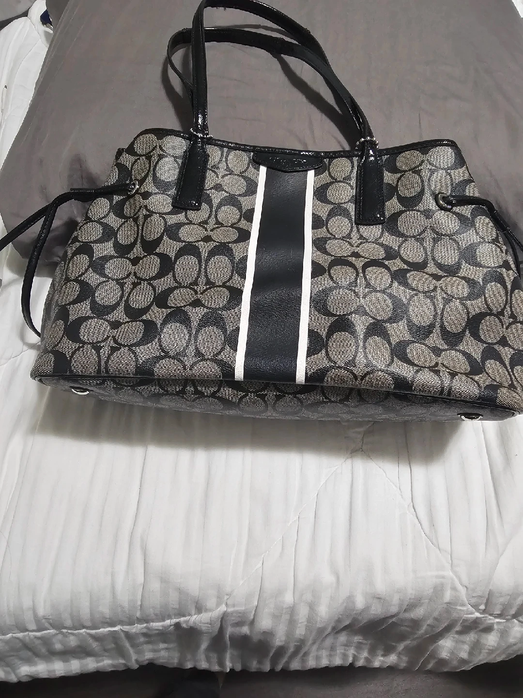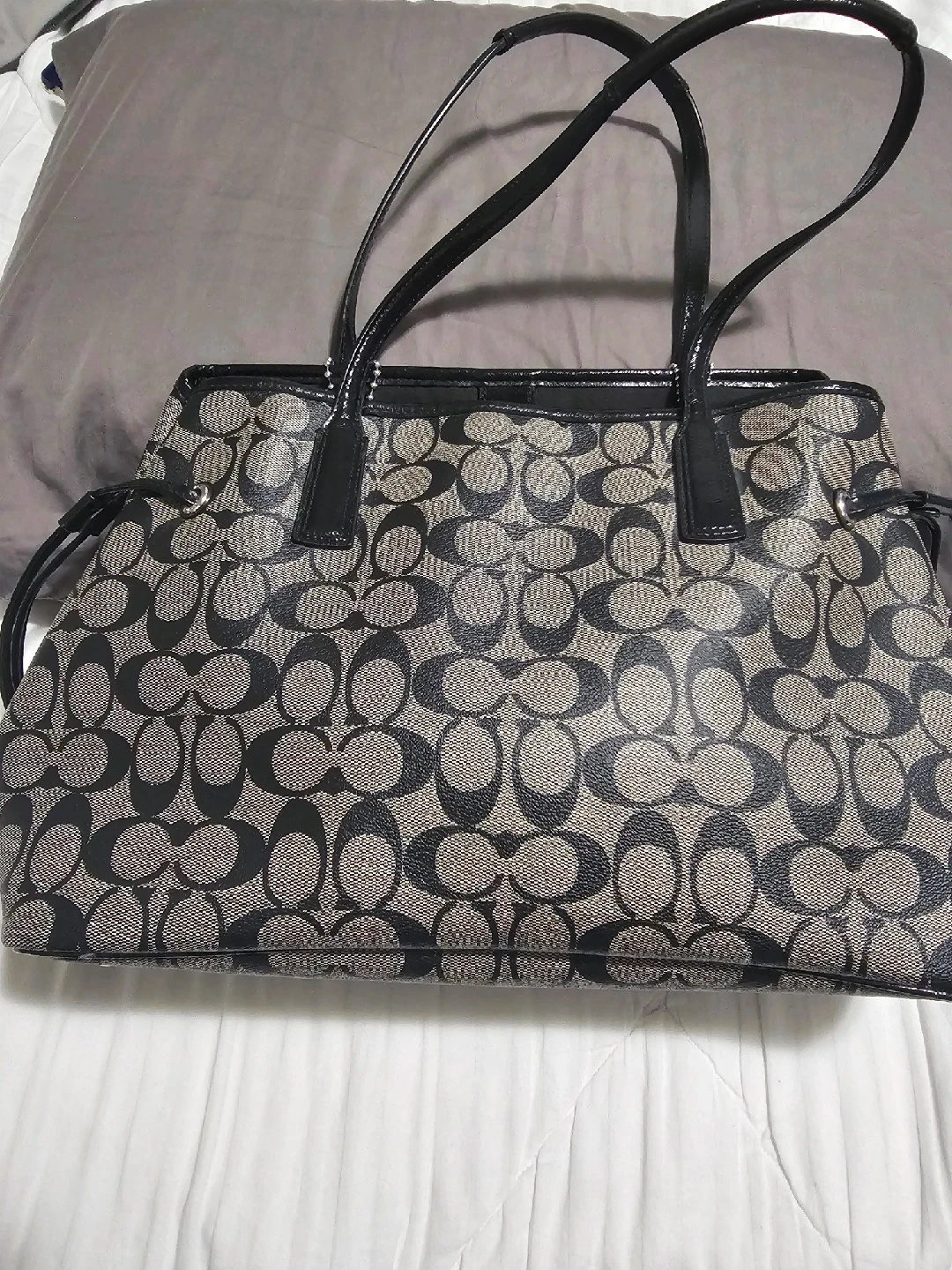 10New never used Selling a Coach tote bag with the signature Coach pattern (Grey with black Coach logo) . It features black trim and comfortable shoulder straps. The interior has a zip pocket for secure storage. This stylish and practical bag is perfect for everyday use! or a gift!!