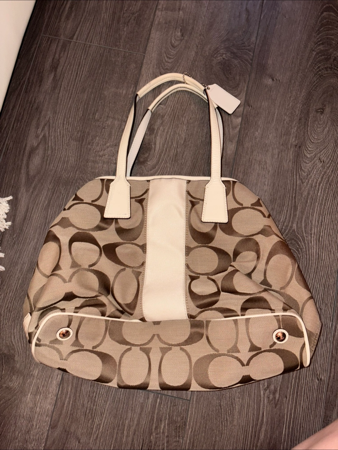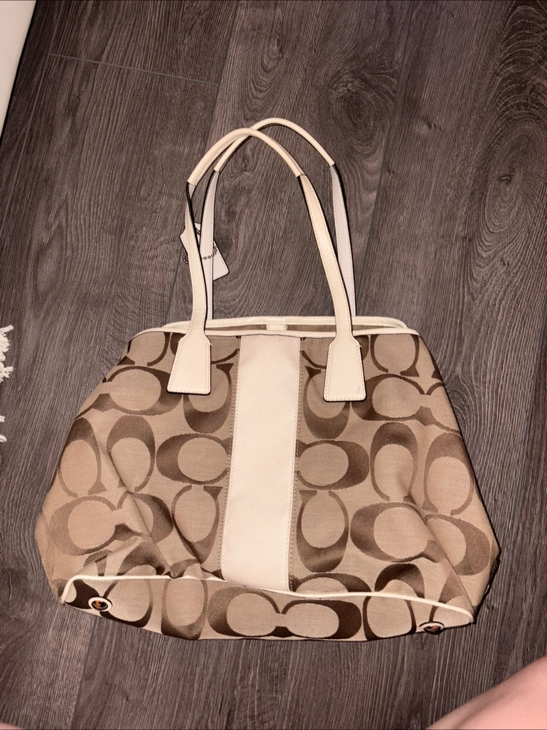 This is the Coach Signature Tote in Jacquard & Creme Bag🌟 Model Number: F13533 Original Price: $250.00 --> MY PRICE: $100.00 Negotiations are welcome! Very spacious! Lots and lots of pockets! Very cute and chic!