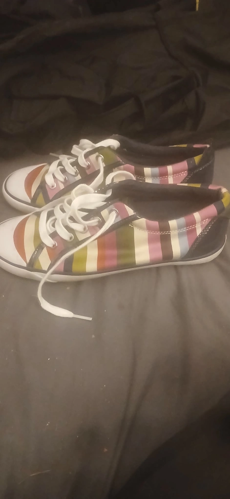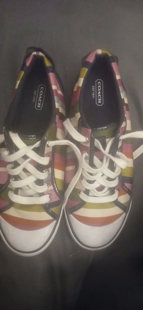 Selling a pair of Coach striped sneakers! They're in great condition and feature a fun, colourful striped pattern. Perfect for adding a pop of colour to your outfit!