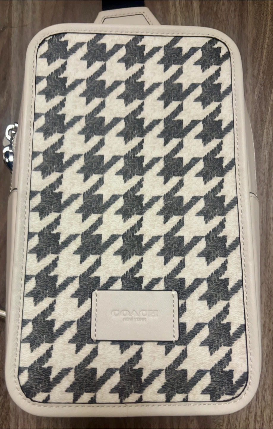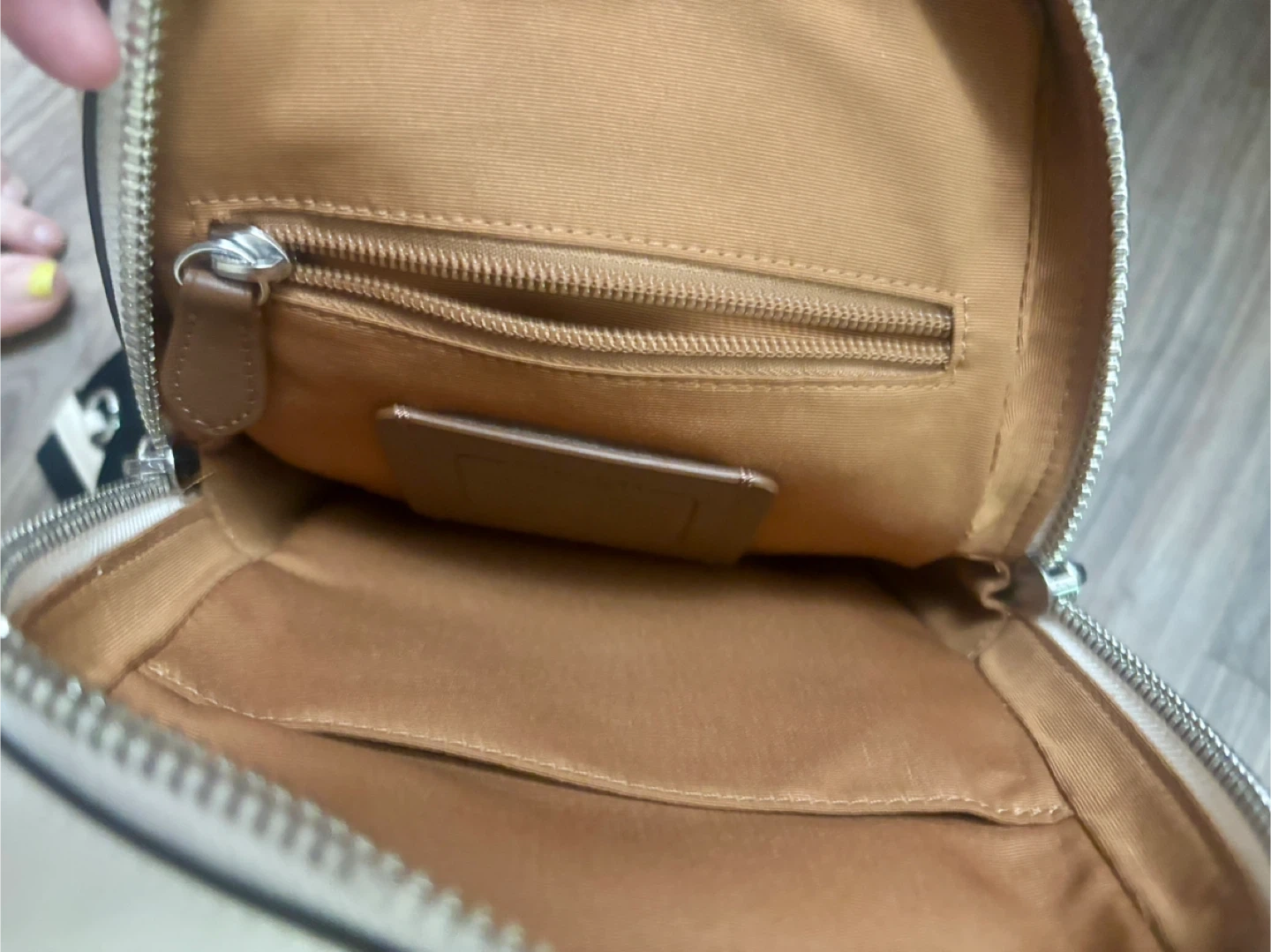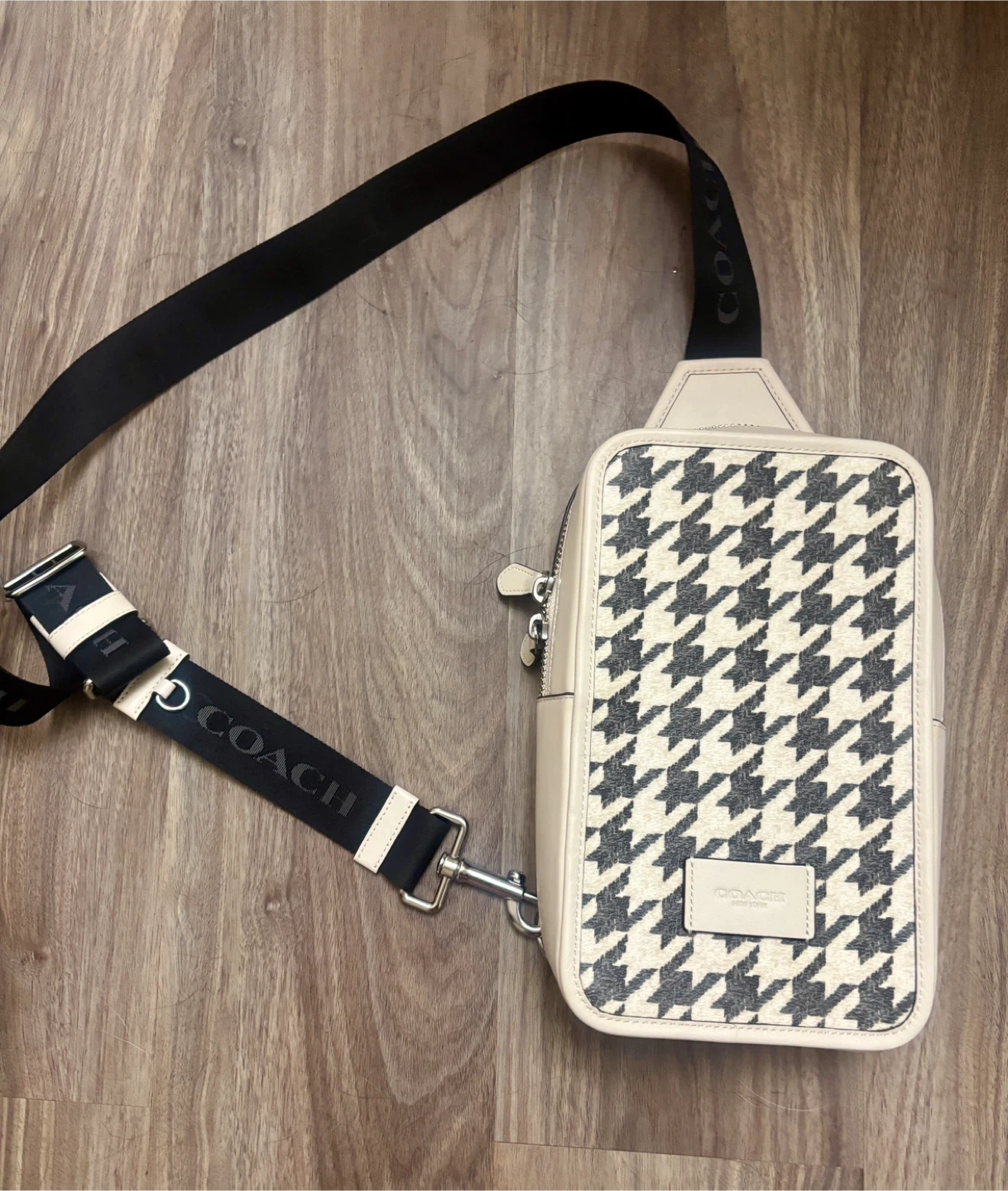 Used once. Great condition. Sling bag Printed coated canvas and smooth calf leather Inside zip and multifunction pockets Adjustable shoulder strap for crossbody wear (clip left or right) 6 1/4" (L) x 10 1/2" (H) x 2 1/4" (W) Style No. CJ588