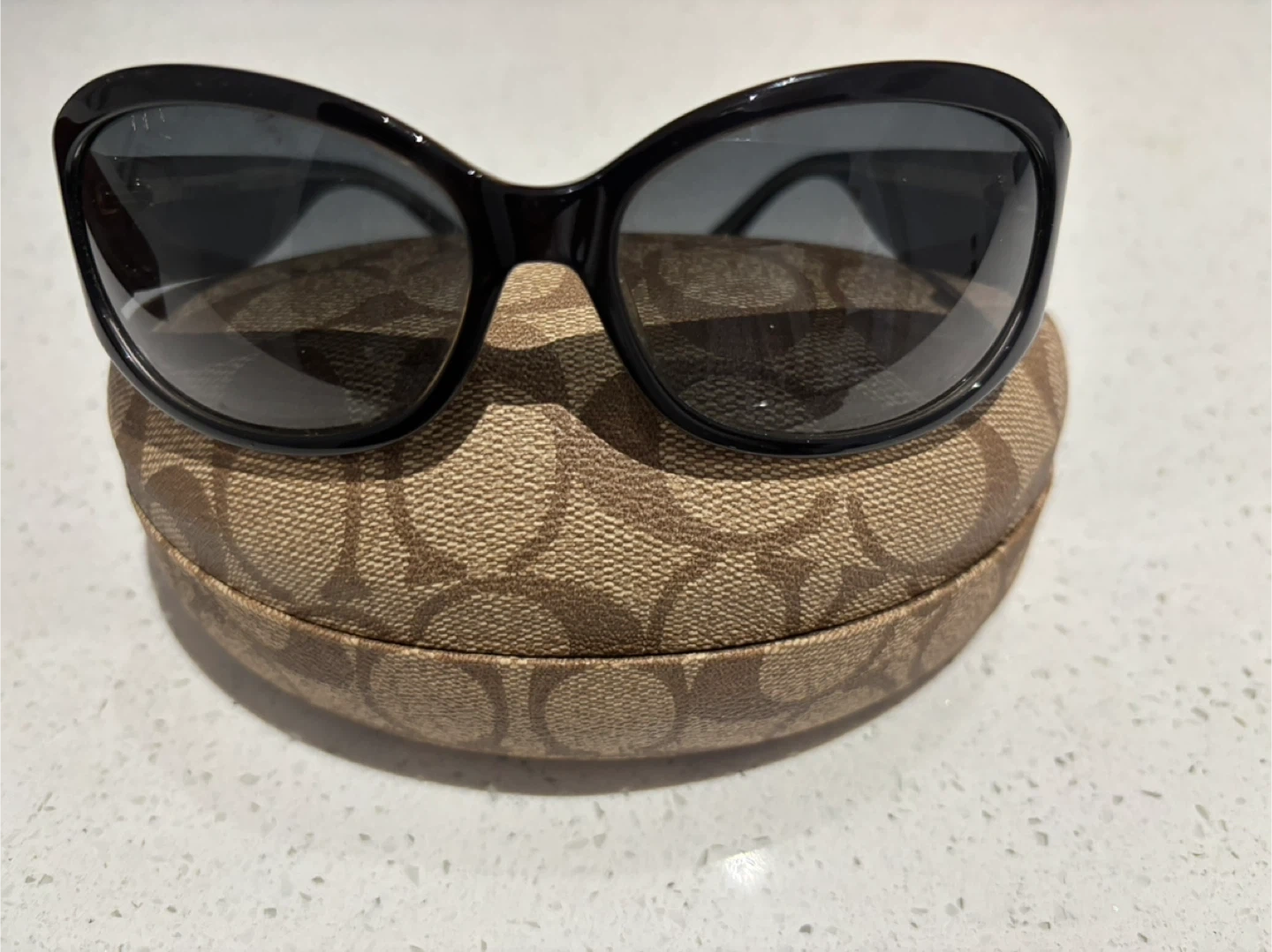 26Authentic Coach black sunglasses with Coach logo on the arms. In great condition! Like new. Only used a few times. No scratches. Comes with original case.