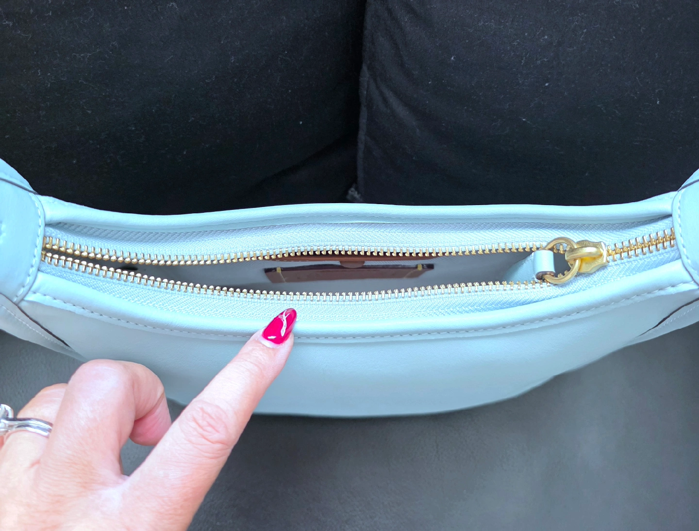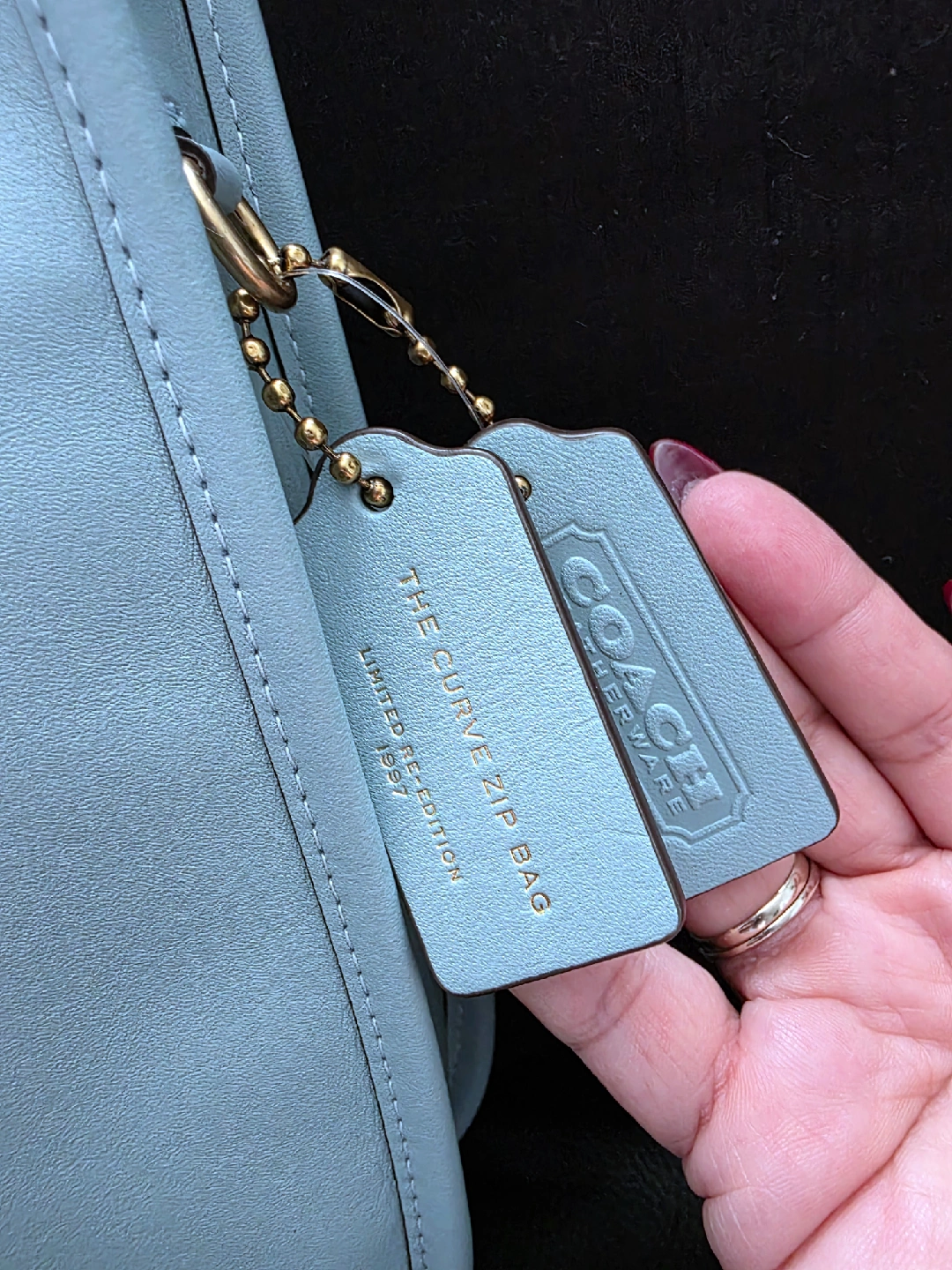 10Selling a Coach The Curve Zip Bag, a limited re-edition from 1997! This bag is a beautiful bluebell colour and made of genuine glove-tanned leather. It's a stylish and classic piece!
